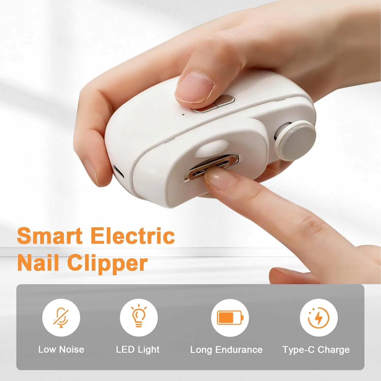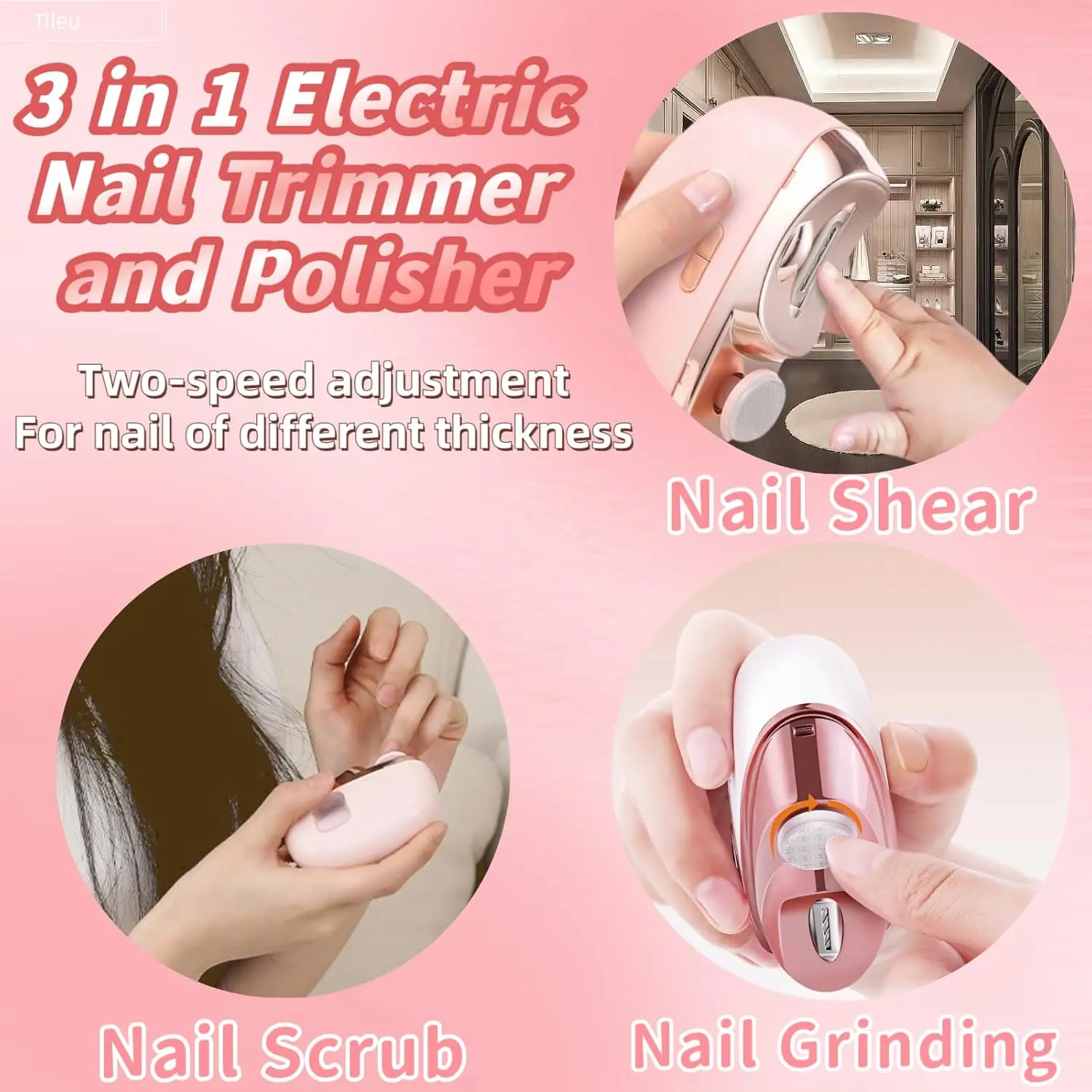 Electric Nail Clippers, Three-In-One Automatic Electric Nails with Polishing, USB Rechargeable with Light Scissors, Portable LED Nail Trimmer