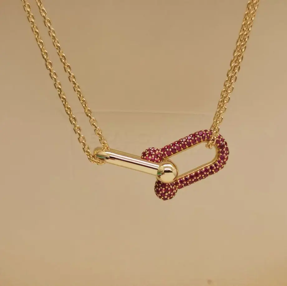 Pre-owned Tiffany & Co. Hardwear 18K Yellow Gold Large Double Chain Link Pendant Necklace with 1.44ct Rubies, 16.93" Chain, Limited Edition of 150 Worldwide