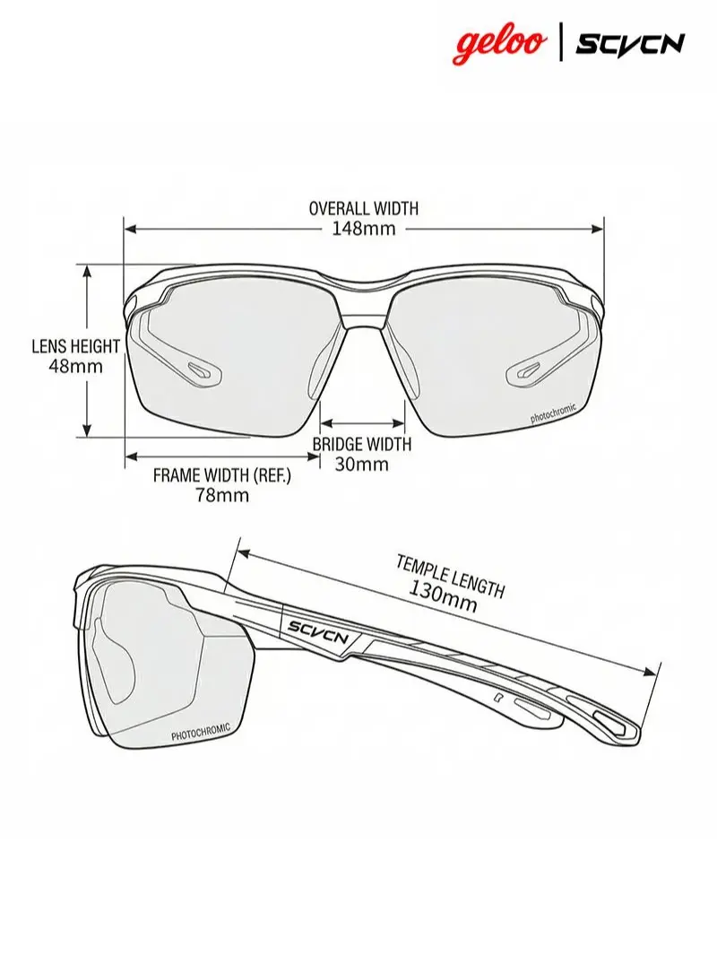 These professional photochromic sports sunglasses are designed for performance, protection, comfort, and versatility. Weighing approximately 27g, they are ultra-lightweight for all-day comfort. Made from PC lenses & PC frame, they offer durability and style.