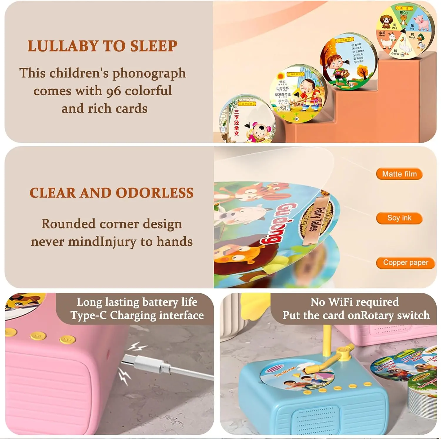 Toddler Record Player with 104 Cards (96+8 Recordable) | Kids Phonograph & Storytelling Machine | Screen-Free Learning Toy for Ages 3+