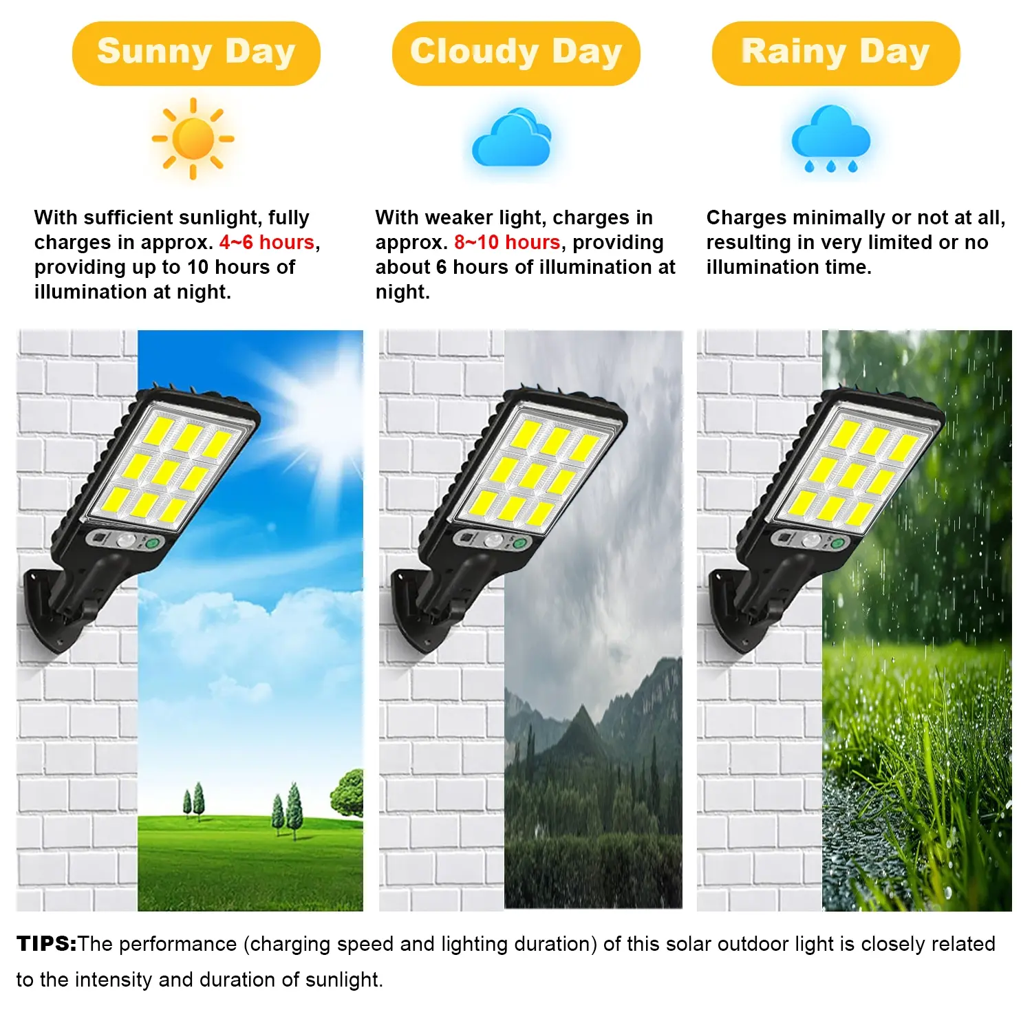 [Outdoor Installation]: Designed for wall mounting, these lights are perfect for gardens, garages, and yards, enhancing outdoor spaces effectively.
