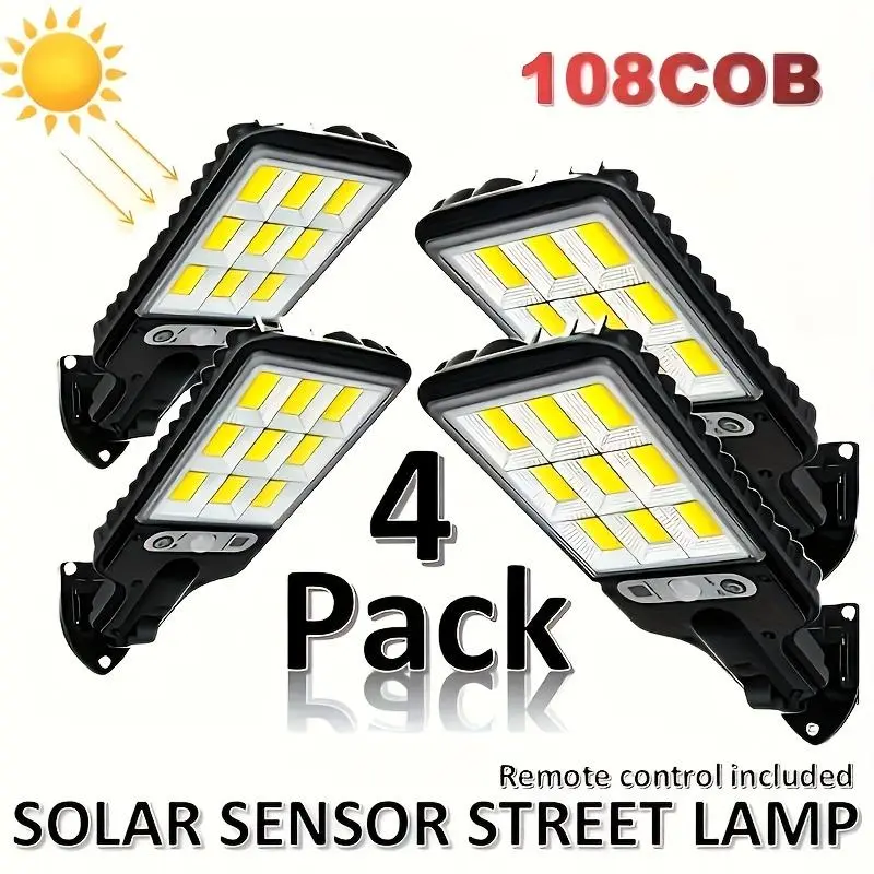 Solar Powered Outdoor Lights, 4 Counts LED Solar Sensor Street Light with Remote Control, Outdoor Wall Mounted Light for Garden, Garage, Yard, Outdoor Landscape Lighting