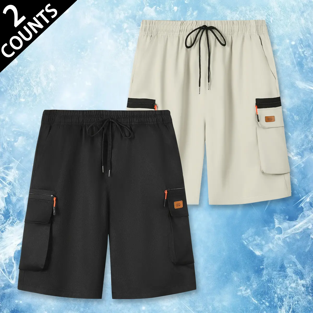 Premium Quick Dry Mens Light Blue Cargo Shorts Casual Drawstring Elastic Waist Zipper Pocket Breathable Athletic Shorts for Gym Workouts Running and Daily Activities