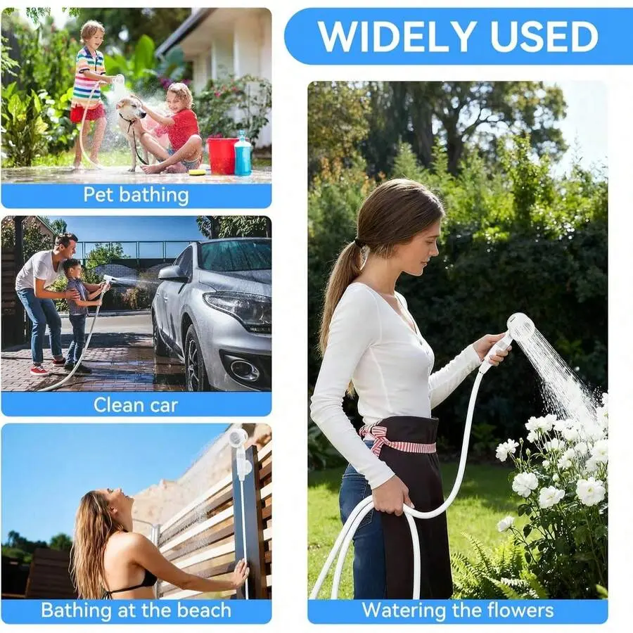 [Portable camping shower]You can take an instant off grid shower anywhere in just a few minutes by simply placing our water pump into any bucket, water tank, or natural water source.The wide 2-meter (6.5 foot) hose provides ample coverage, making it convenient for showering immediately after camping, beach travel, or exercise.It is perfect for indoor and outdoor use.