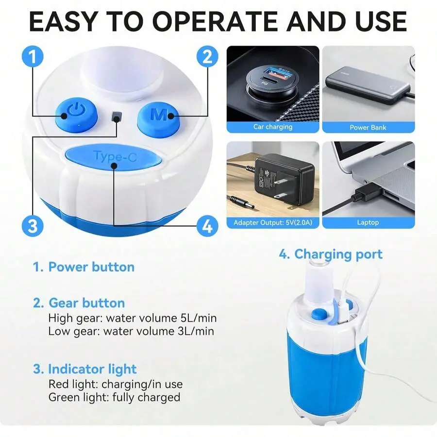 [USB-C fast charging and long-lasting battery life]Built in 4000mAh large capacity battery, one charge can extend the running time of multiple showers, providing ultimate convenience.Easily charge your shower with a USB port, car adapter, or laptop, making it an ideal off grid shower solution for camping, hiking, and van living.