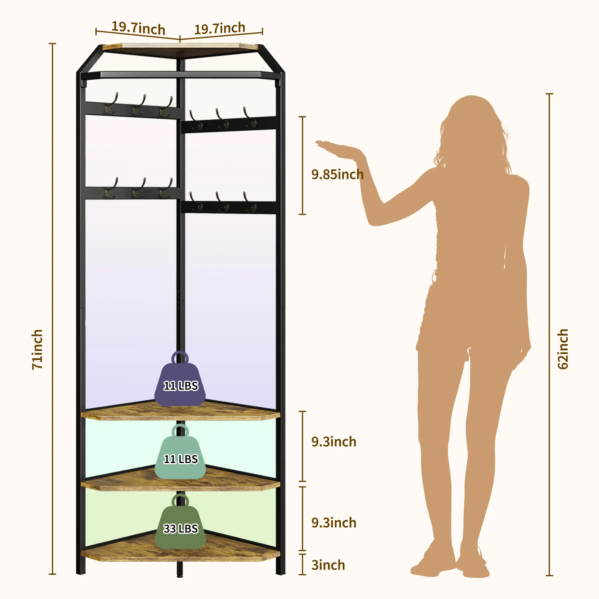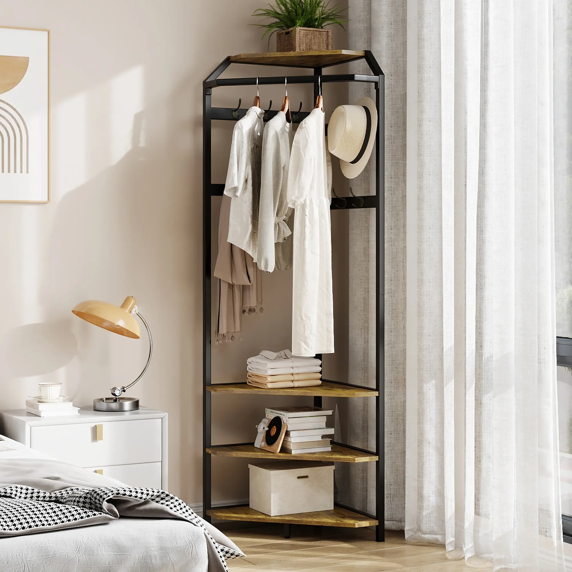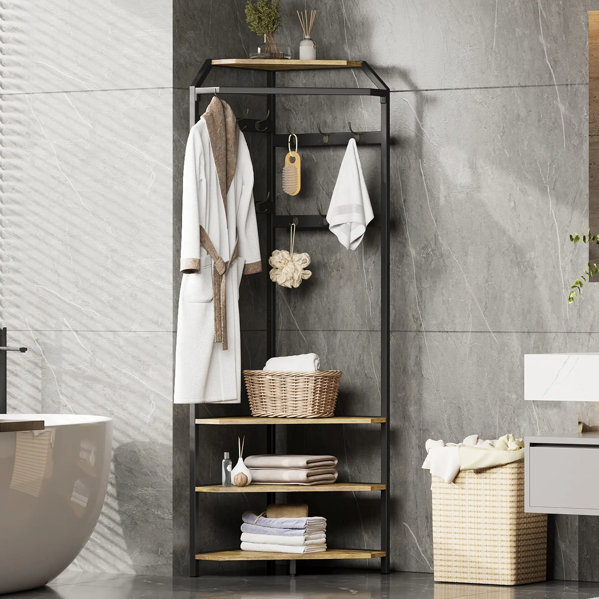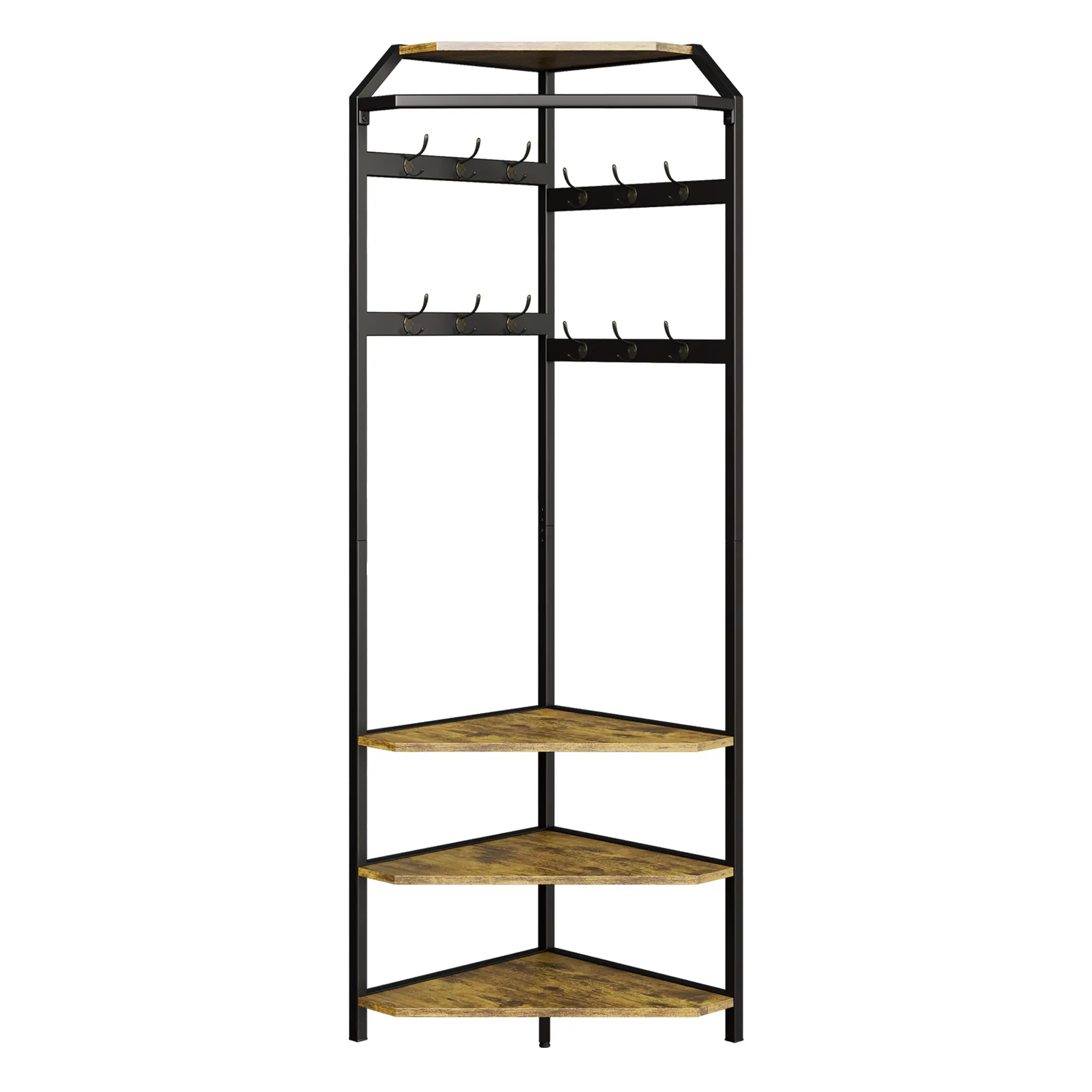 ·Space-Saving Design: Transform any overlooked corner into a functional, stylish entryway with this freestanding corner coat rack. Its 90° triangular shape fits perfectly in hallways, bedrooms, living rooms, or closets, making the most of every inch.