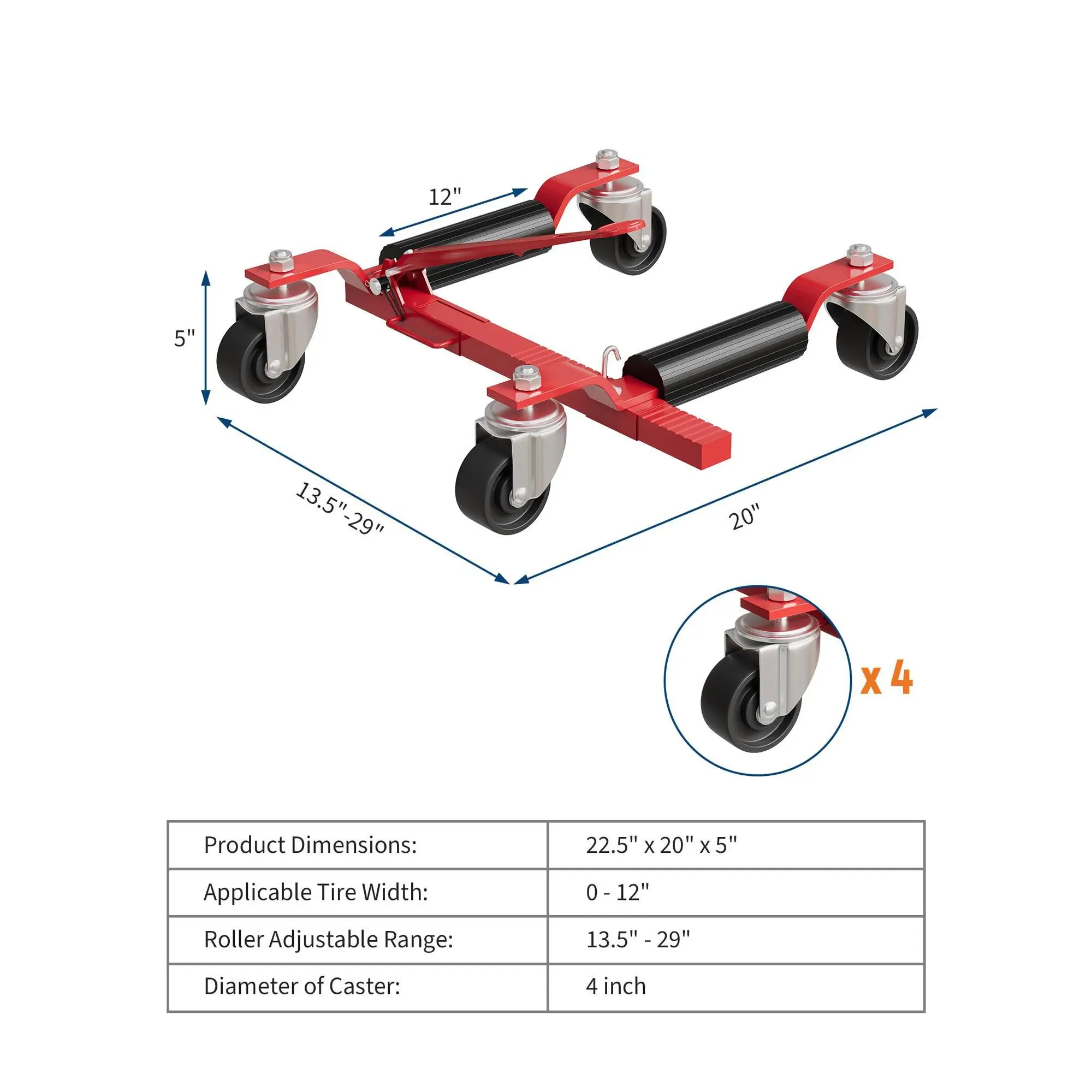 Whether you’re conducting auto repairs, moving disabled vehicles, or optimizing your workshop space, this mechanical car wheel dolly delivers professional-grade performance, safety, and convenience. The set includes: 1 Heavy Duty Car Dolly Jack (Blue, 22.5" x 20" x 5") and all required assembly components.