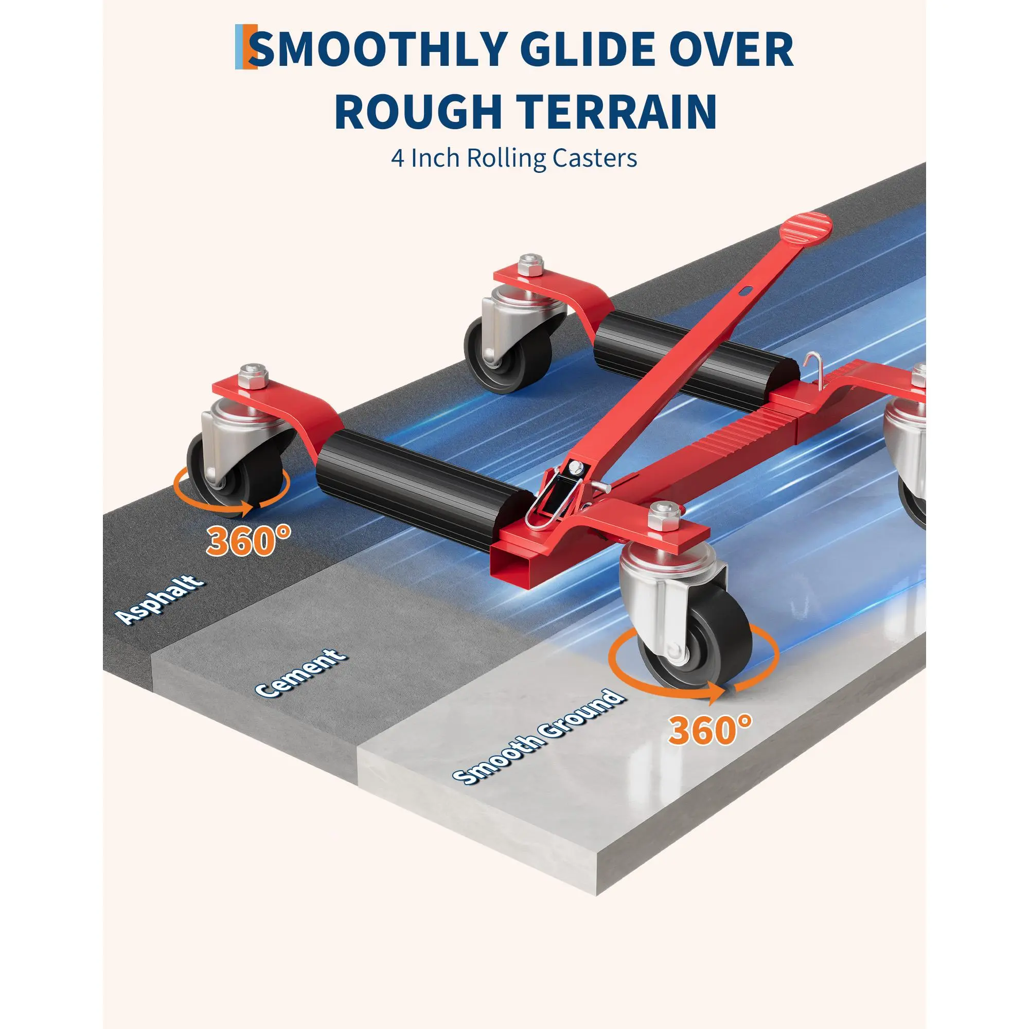 ·Effortless Mobility: Equipped with four 4-inch 360° ball-bearing casters, these dollies offer smooth, accurate movement in any direction, making tight-space navigation easy and efficient in repair bays or storage areas.