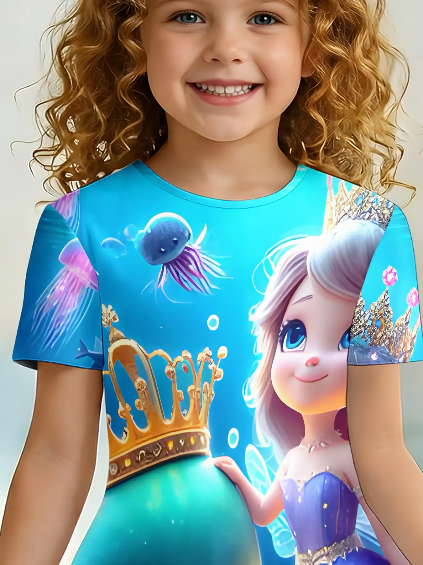 Girls Summer Mermaid Octopus Print Dress, Kids Underwater World Crew Neck Short Sleeve A-Line Dress