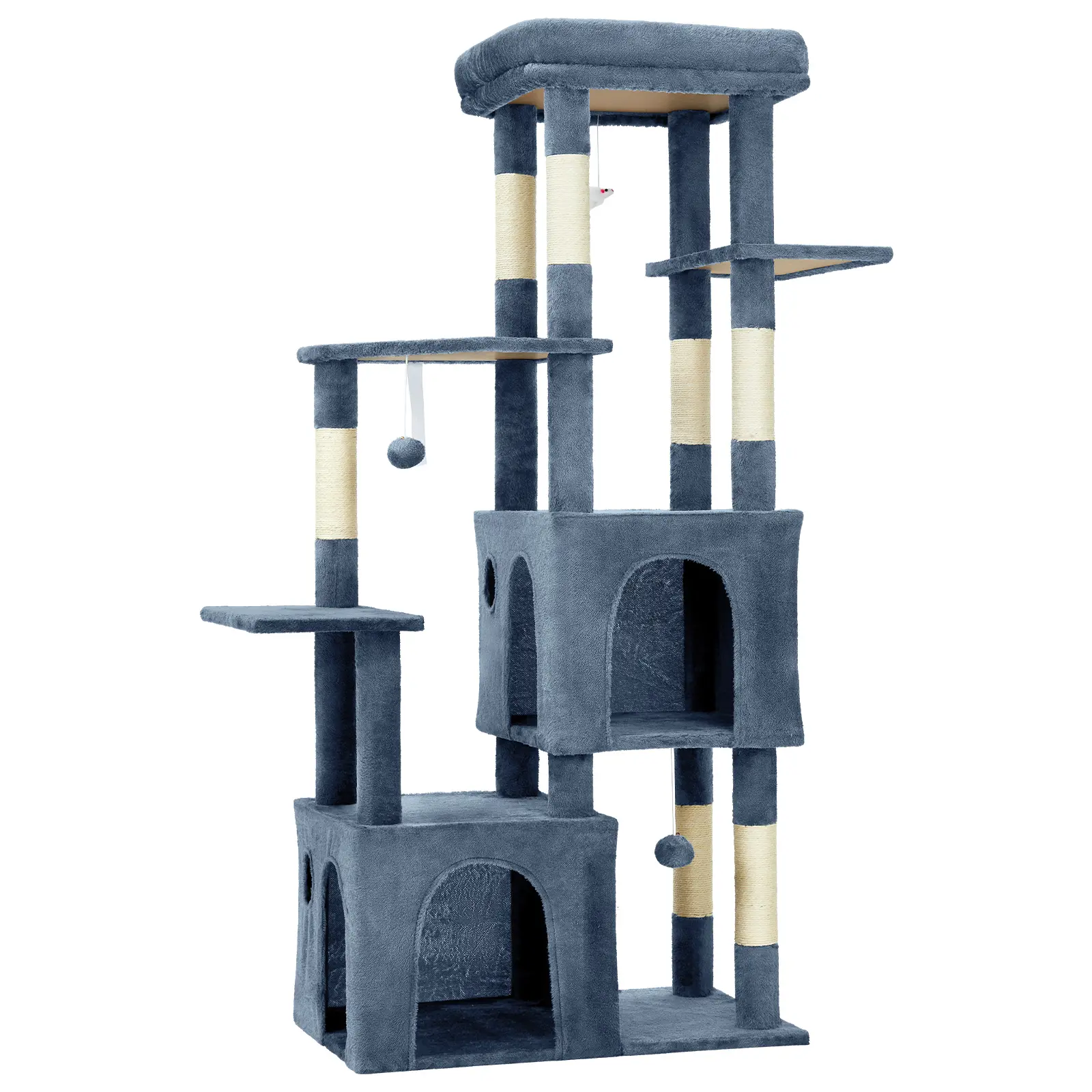 ·[Seven Natural Sisal Scratch Posts] – Built for healthy claw care, this cat tower includes seven durable sisal scratching posts that support natural scratching behavior and help protect your furniture.