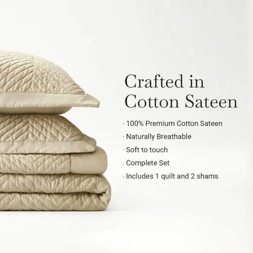3-Piece Full/Queen 100% Cotton Sateen Quilt Set with Shams