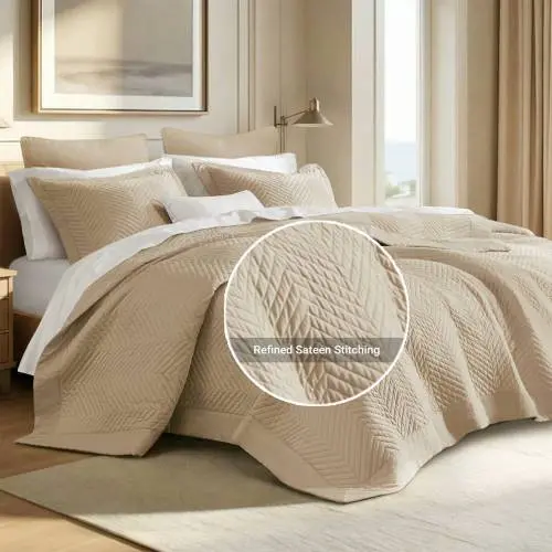 This set includes 1 cotton quilt and 2 coordinating shams, ensuring a complete, polished bed look. Both sides are crafted from 100% premium cotton, offering breathable comfort and temperature-regulating performance. Perfect for year-round use, this set is filled with high-resilience polyester for a fluffy, supportive loft that maintains its shape.