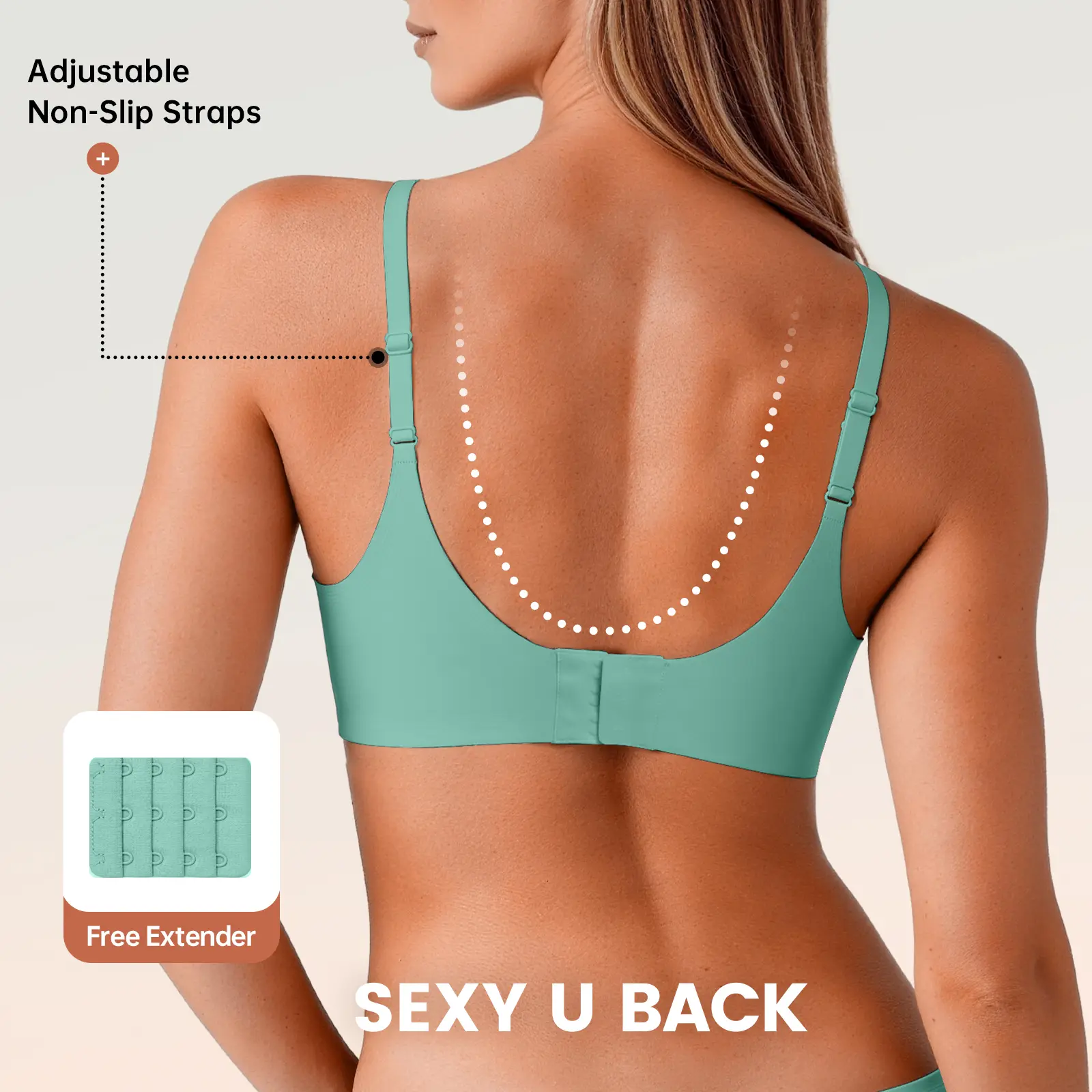 ·【Seamless Sports Bra】Full cup wirefree bras give enough coverage support,the deep V-neck design to better accentuate your bust line and low back design shows your charming curve. This bralette for women is lightweight and non see-through, it hugs your chest perfectly, solving any awkward clothing situations.