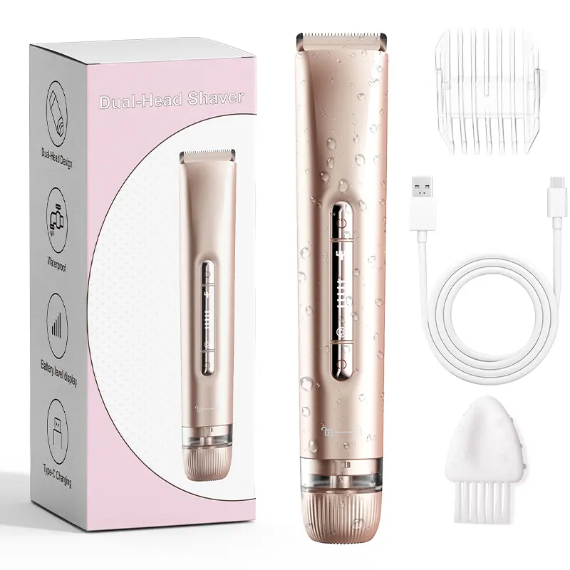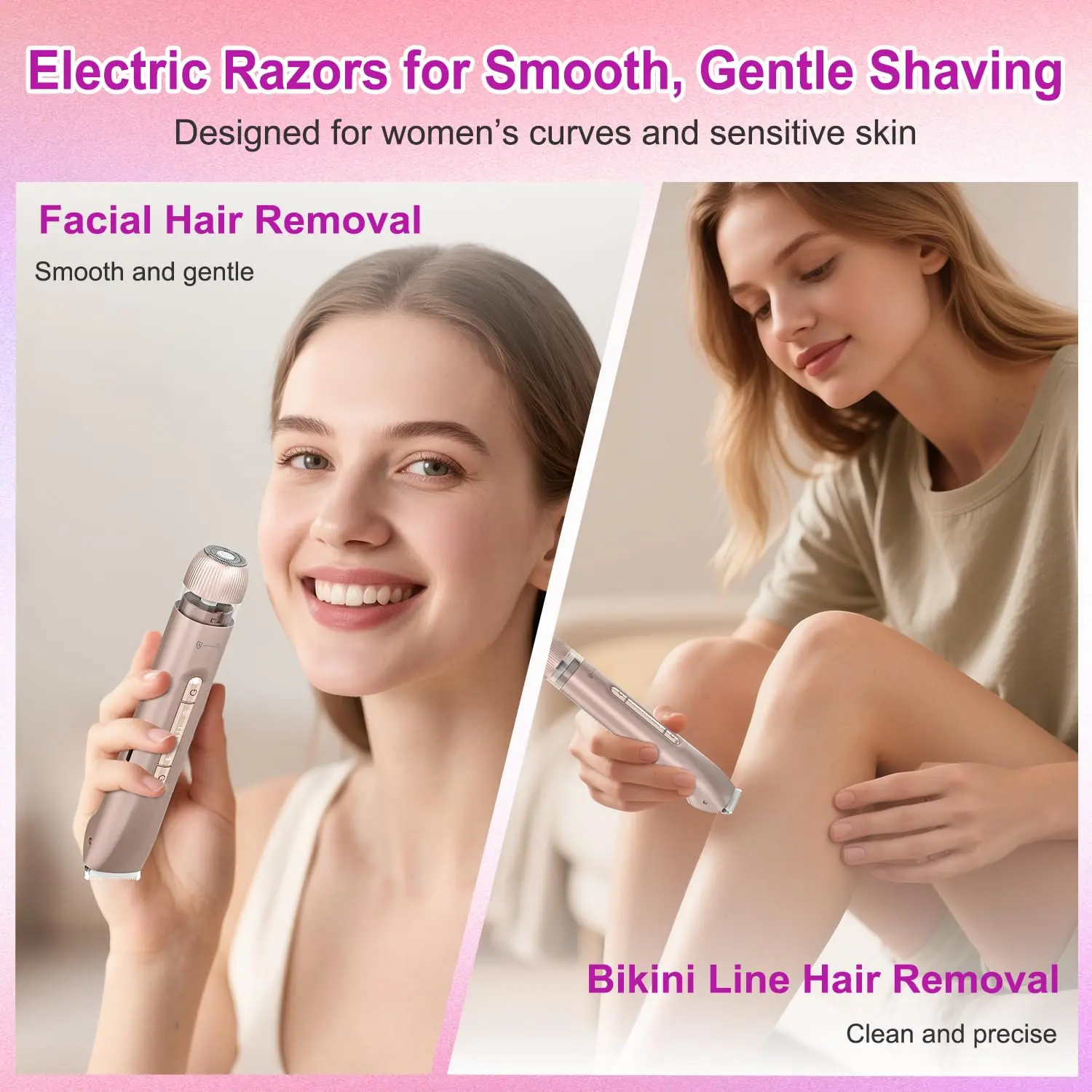 2026 New Women's 2-In-1 Waterproof Electric Shaver & Bikini Trimmer, Dual-Head Hair Removal Razor for Bikini, Underarm, Leg, Arm & Facial Hair, Wet Dry Use, USB Rechargeable (Champagne)