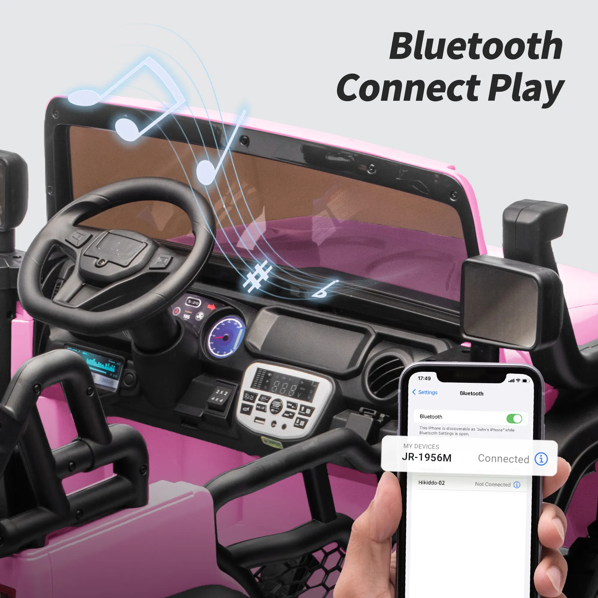 Bluetooth Connectivity: Bluetooth & USB connection, enables the kids to ride with favorite tunes