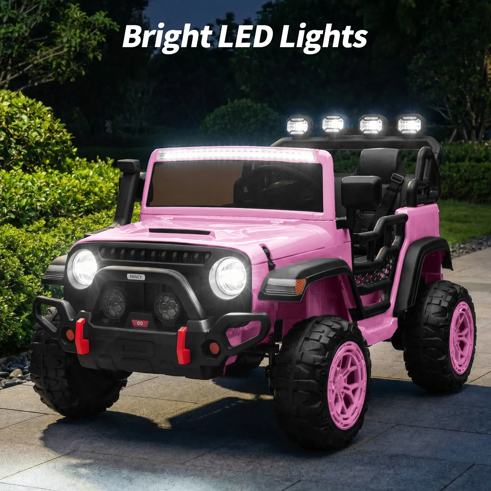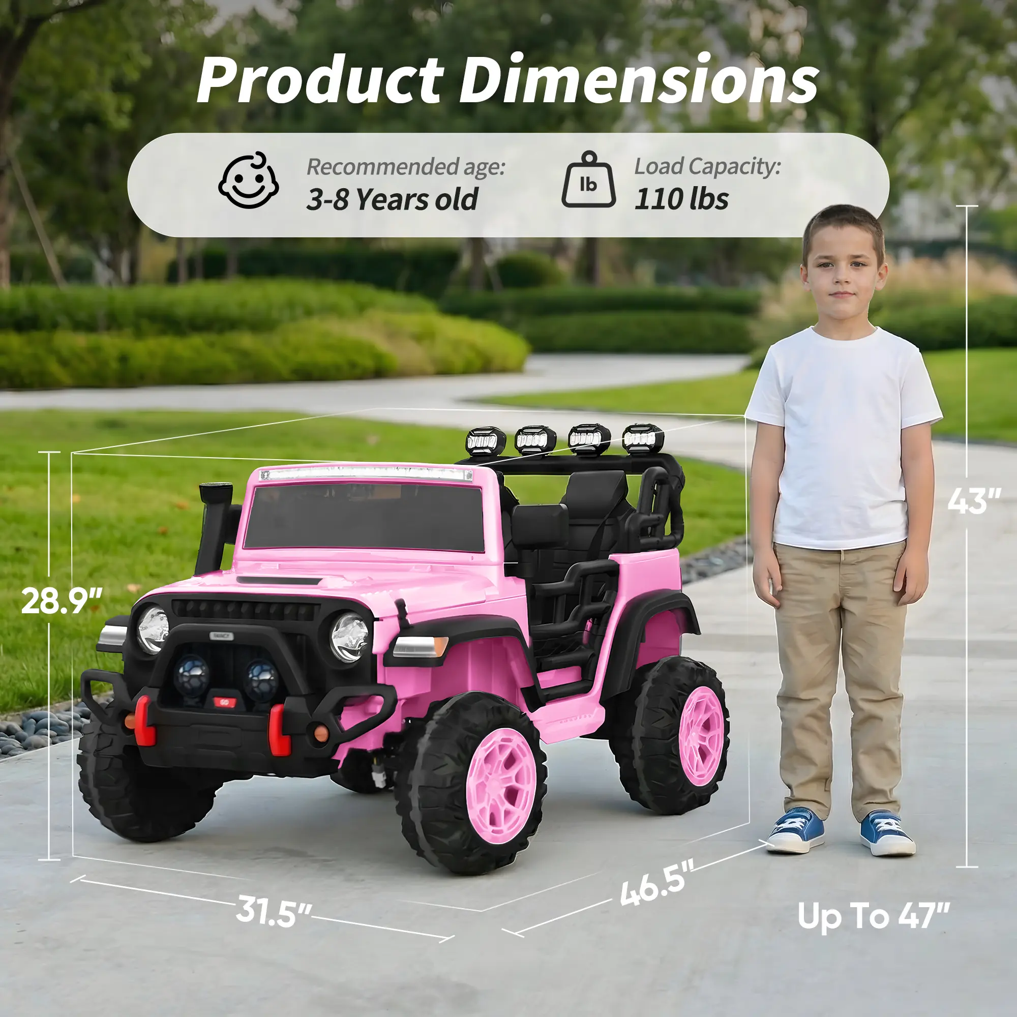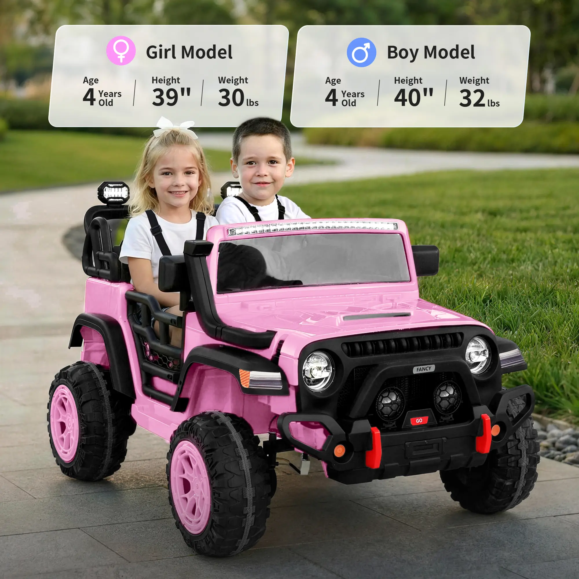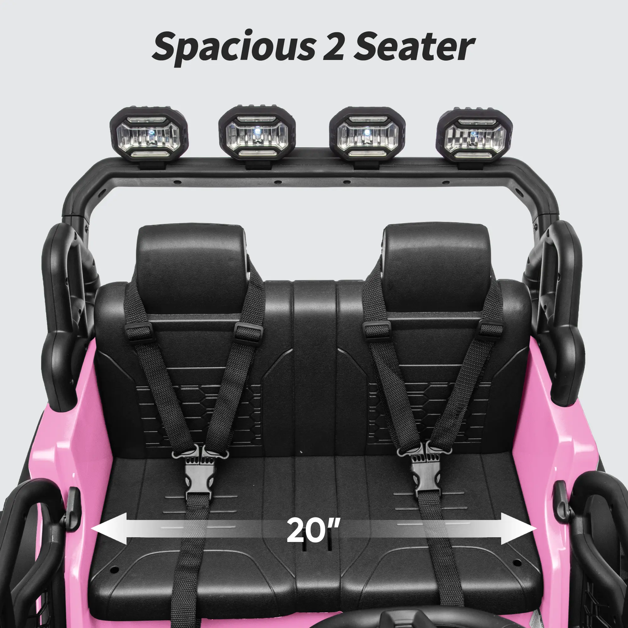 True 2-Seater Design: with 3-point seat belt, offering a safe, comfortable ride for 2 kids to enjoy adventures together
