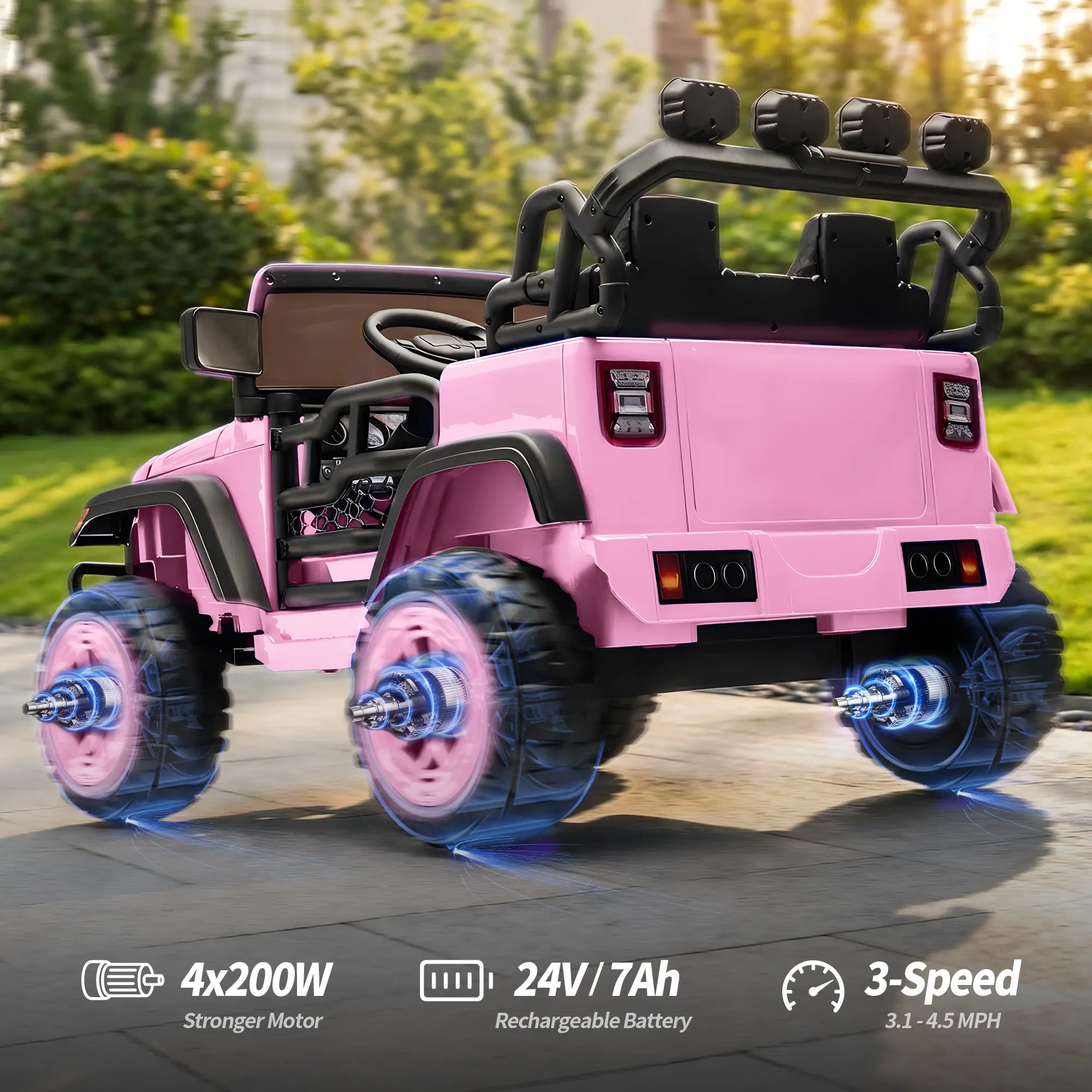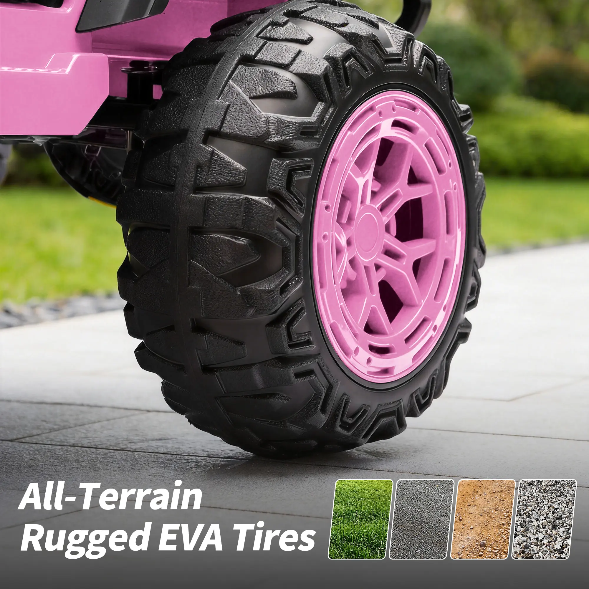 Four-Wheel Shock Absorption System: EVA rubber tires offer stronger grip; shock absorption ensures a smooth ride across various terrains