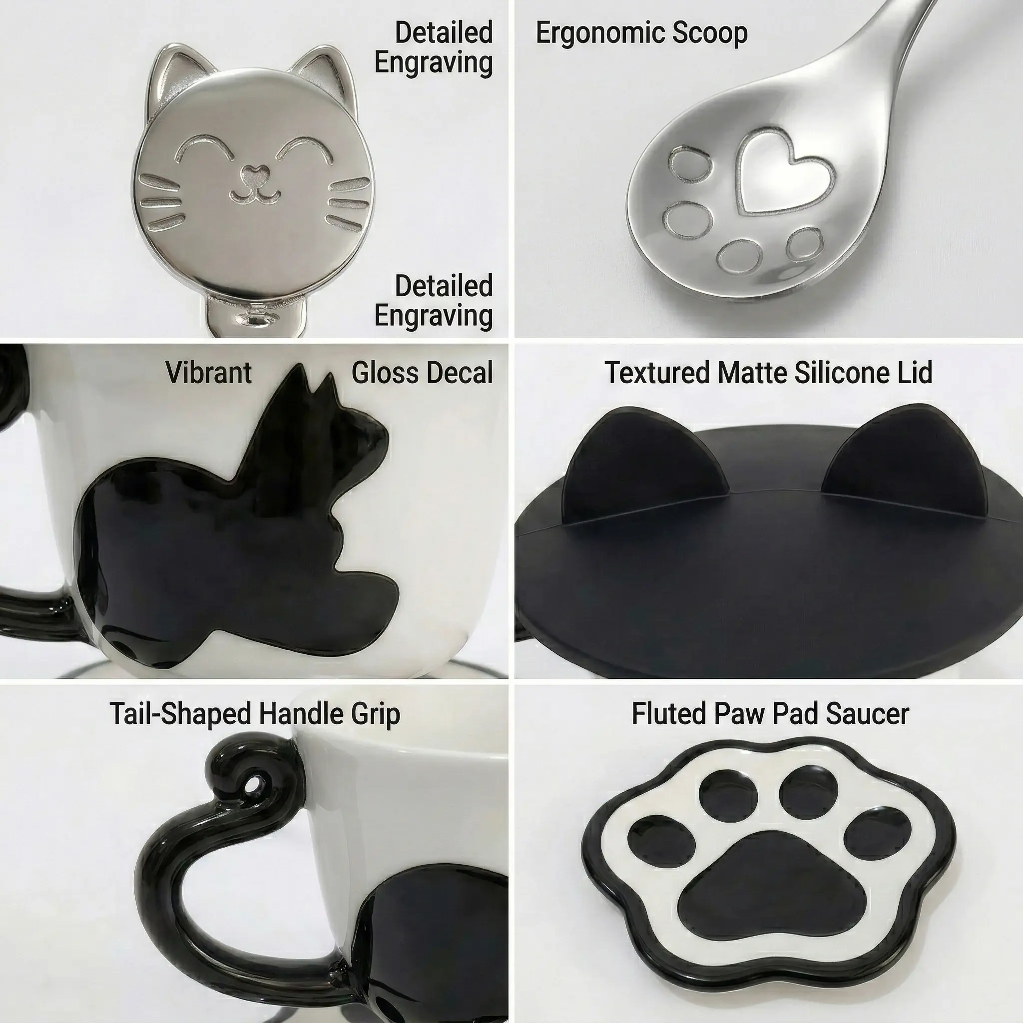 Purr-fect Morning Sip – Cute Cat Design 4-Piece Set