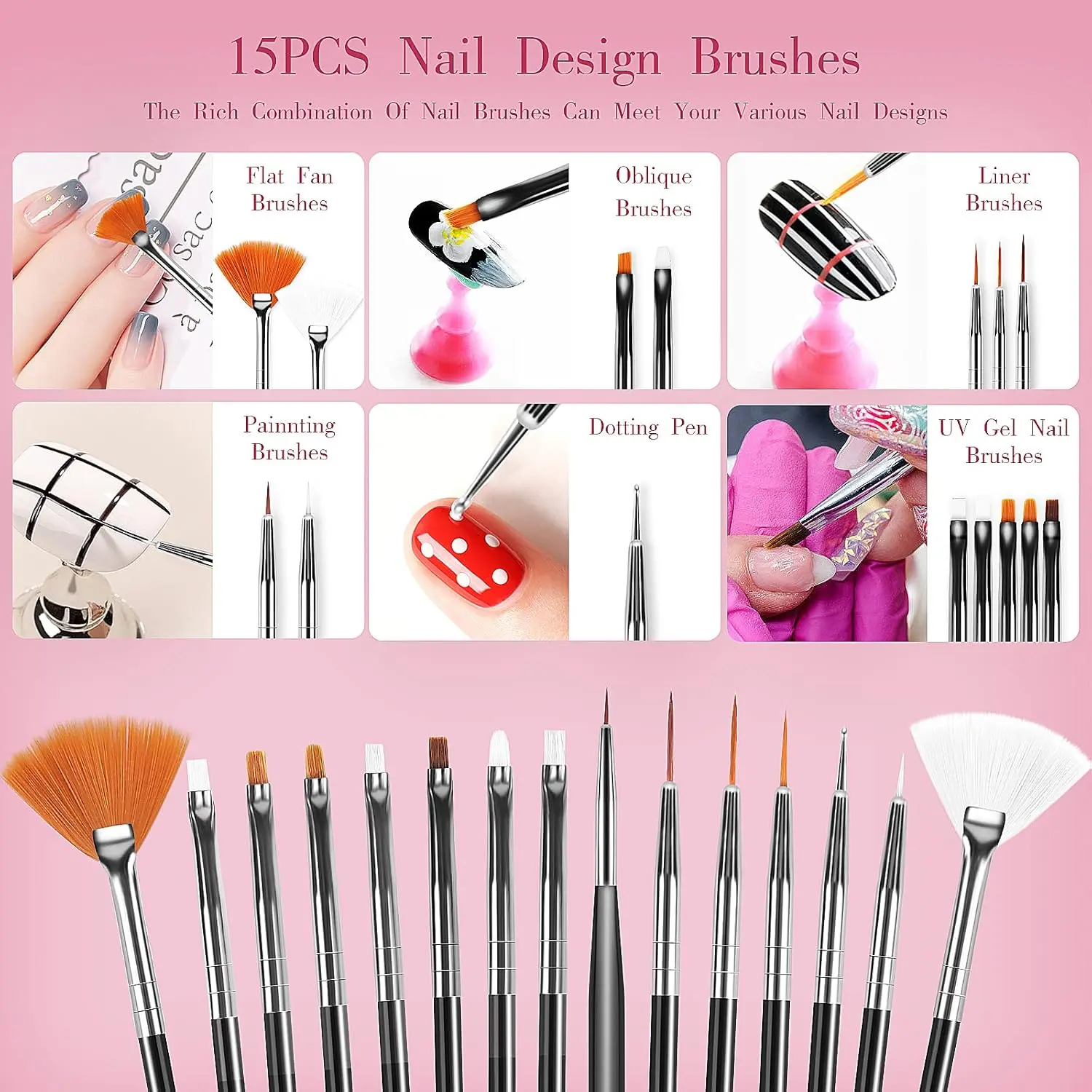 ·1.【MULTIFUNCTIONAL NAIL ART BRUSH SET】 : The Nail Art Brush Set Is A Total Of 32 Pieces, Including 15 Nail Art Design Brushes, 5 Colorful Double-Ended Nail Point Tools, 5 Acrylic Nail Brushes, 3 Nail Line Brushes, 3 Double End Nail Art Brushes And 1 Dusting Brush, A Rich Combination Of Nail Brushes Can Meet Your Various Nail Designs.