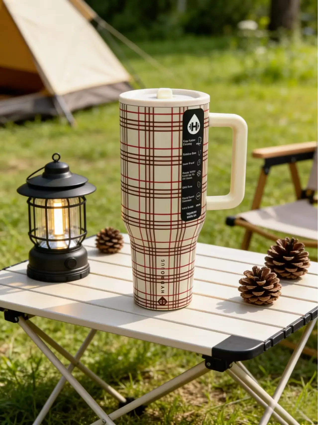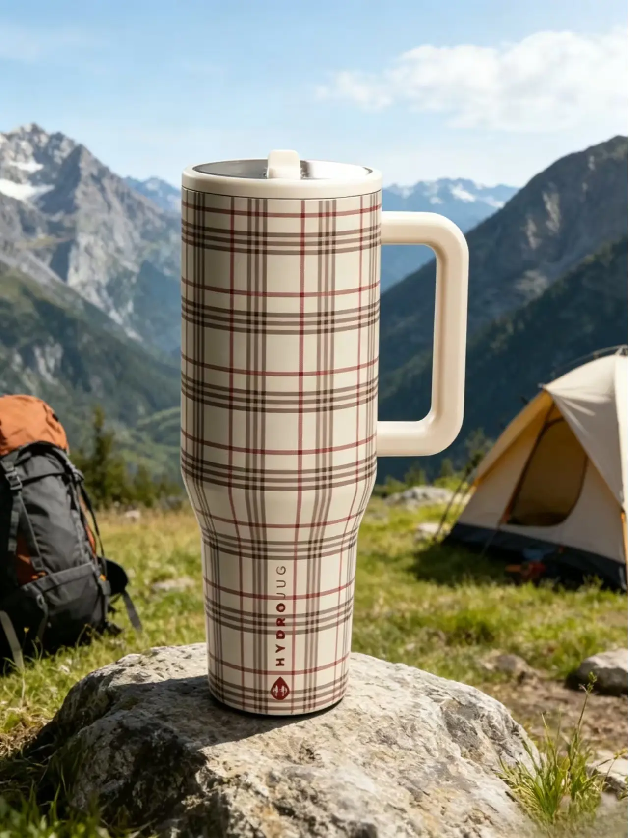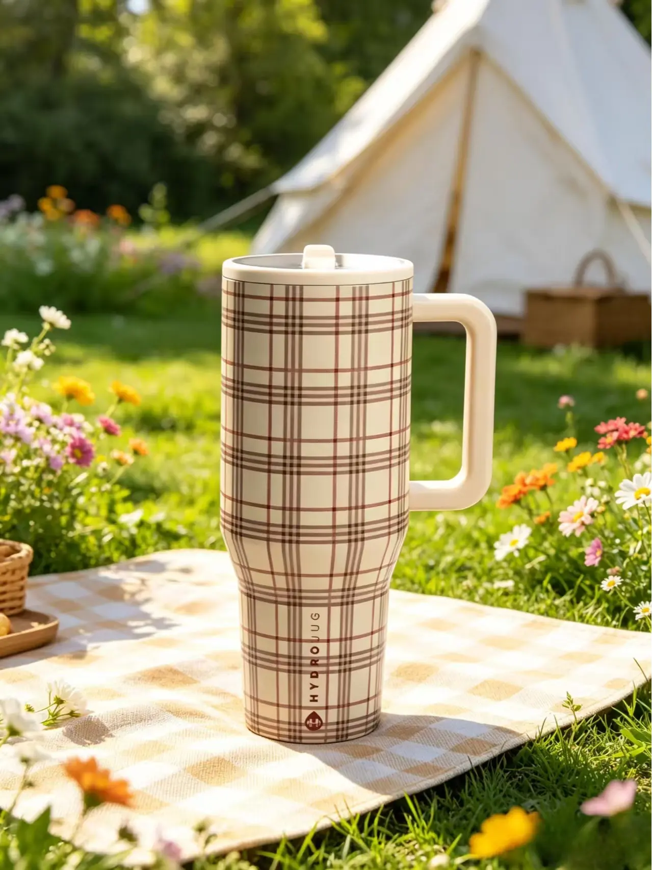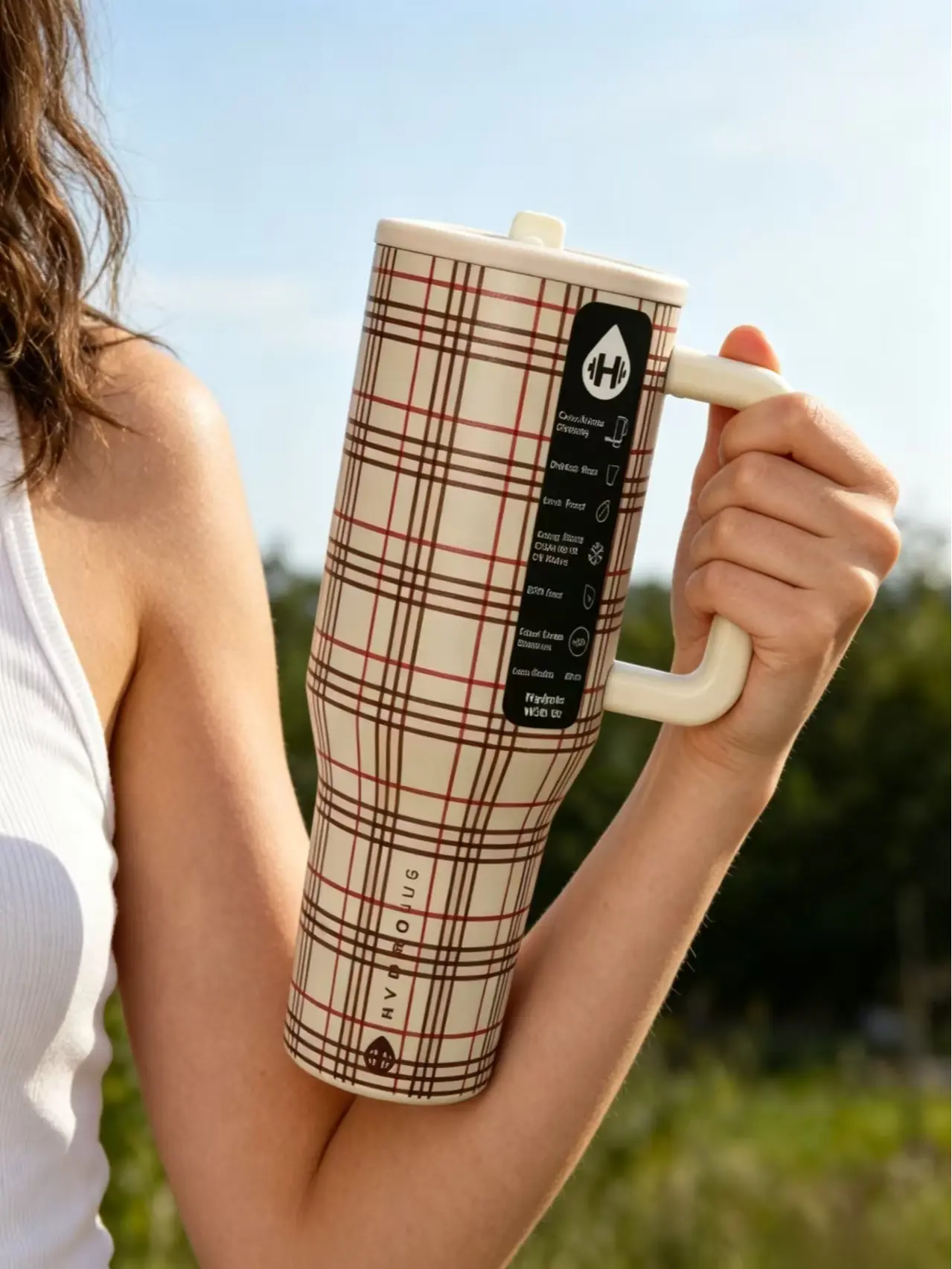 Equipped with a handle, this tumbler is easy to carry. It's a versatile drinkware option, suitable as a flask, mug, or portable water bottle. The plaid pattern adds a stylish touch. 🎨