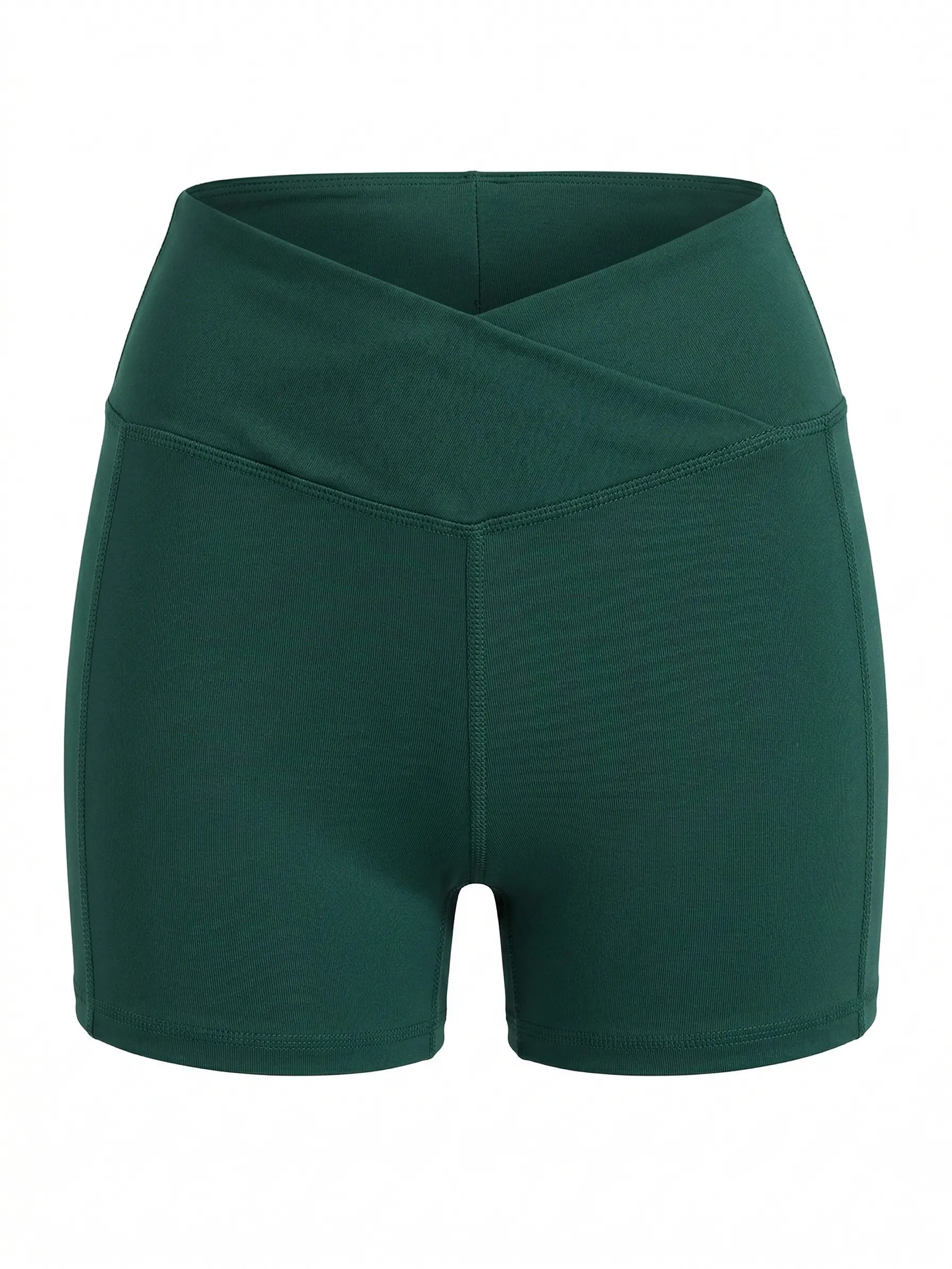 5. O2K4 Oxygen Cross Waist Yoga Shorts with Pockets for Women, Crossover High Waist Lounge Biker Shorts