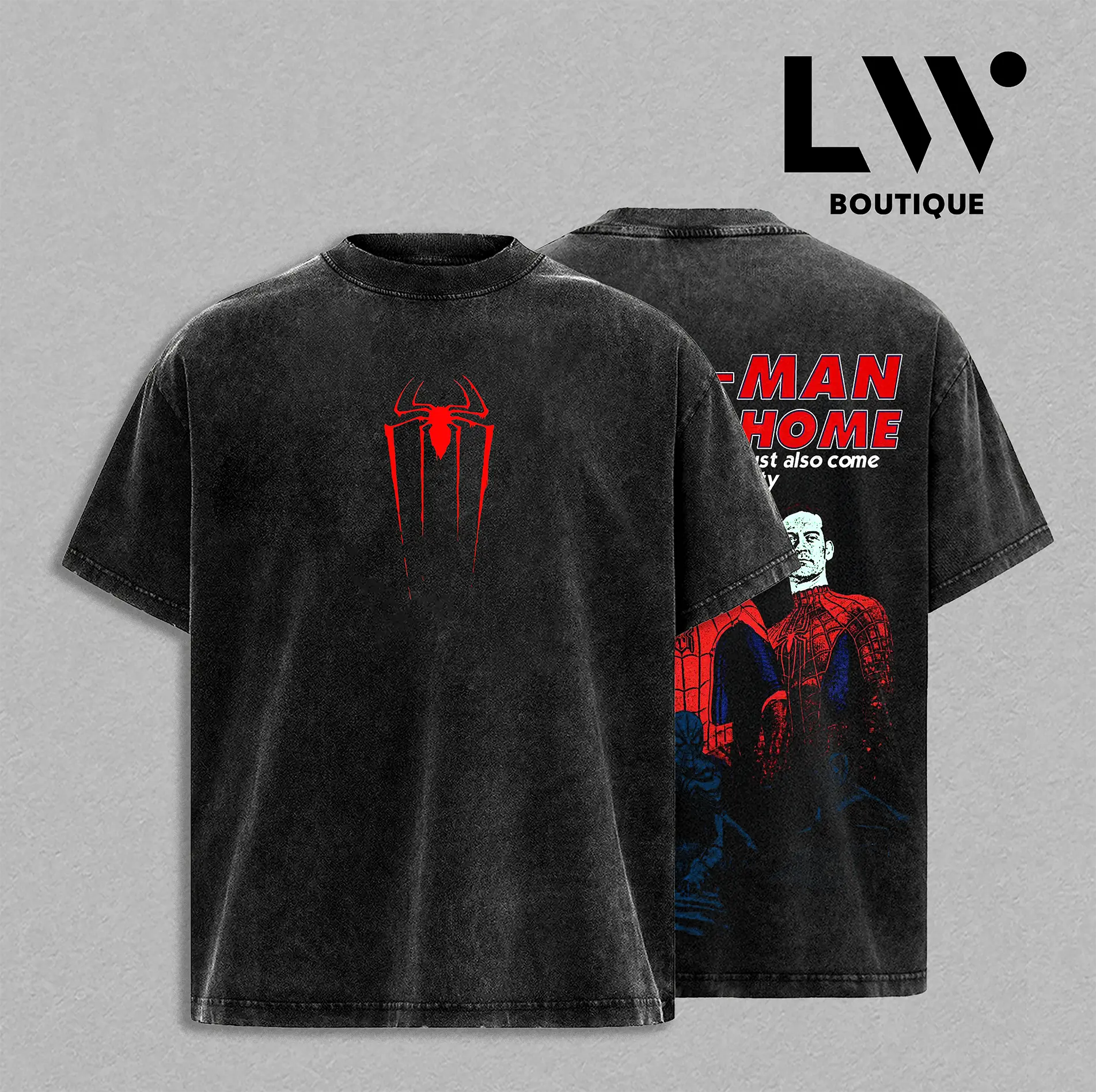 Superhero Spider Graphic Vintage Washed Oversized T-Shirt, Dark Comic Inspired Tee, Heavyweight Cotton Boxy Fit Streetwear, Retro Hero Aesthetic Unisex Shirt