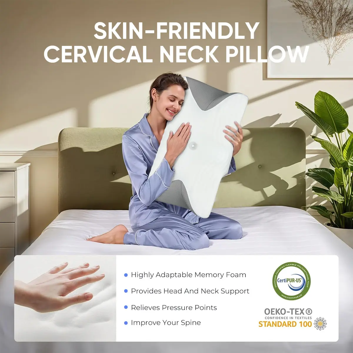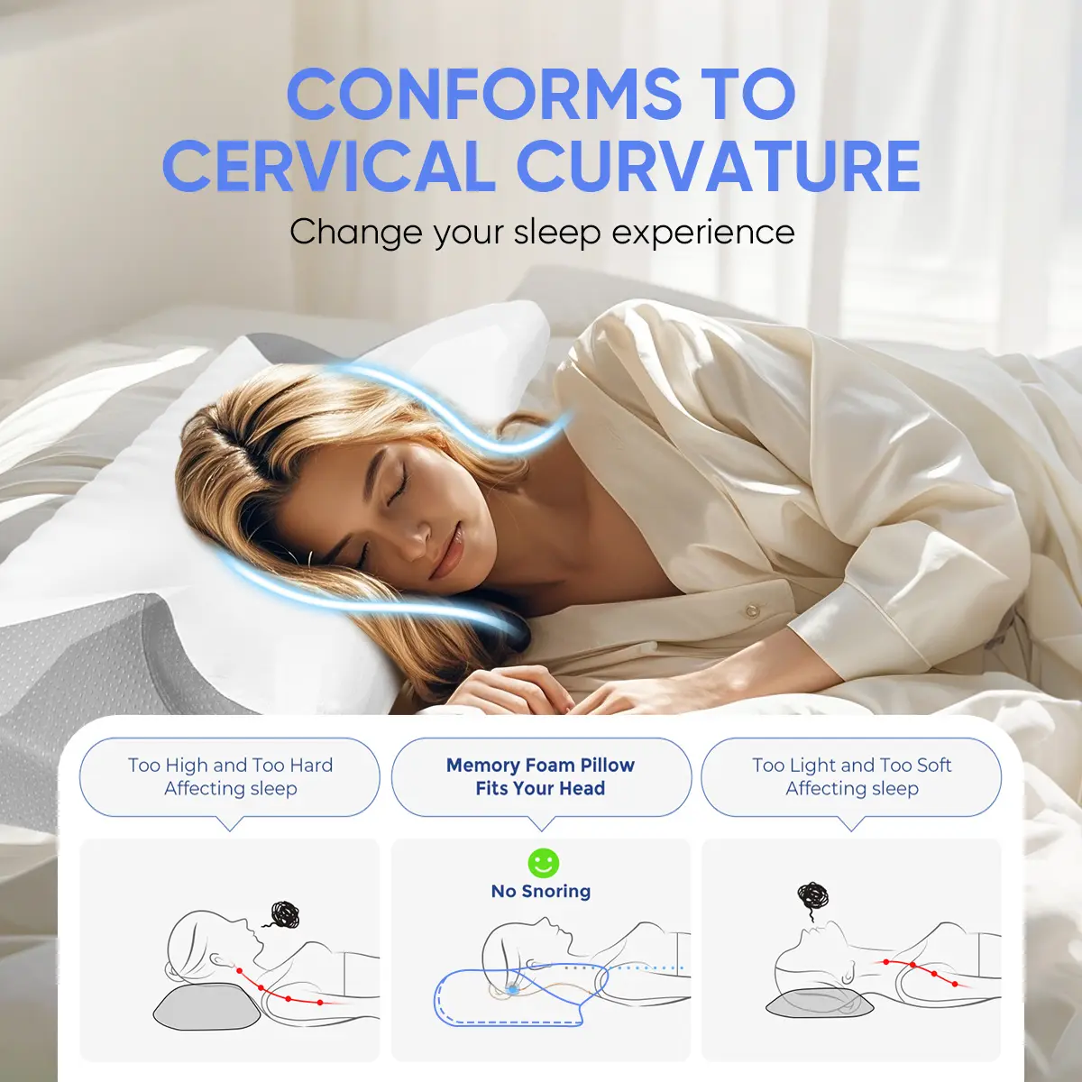 ·Ergonomic Cervical Support: Designed to perfectly conform to the natural cervical curvature, effectively relieving neck pressure, correcting spine alignment, and reducing snoring by keeping the airway open during sleep.