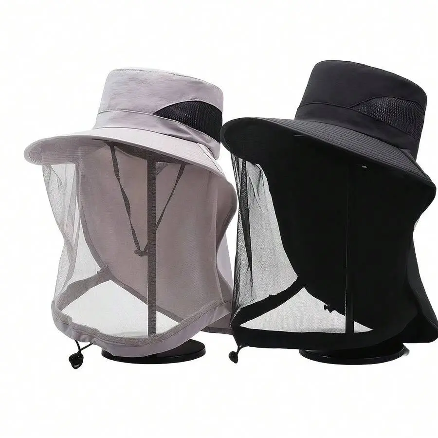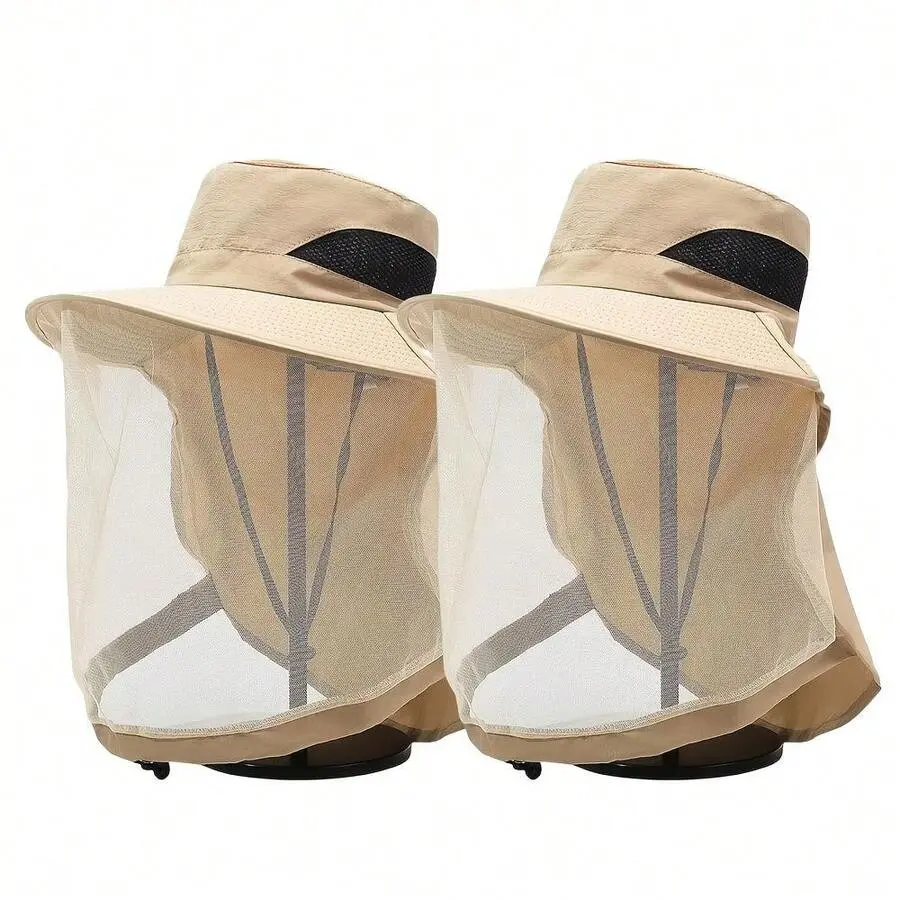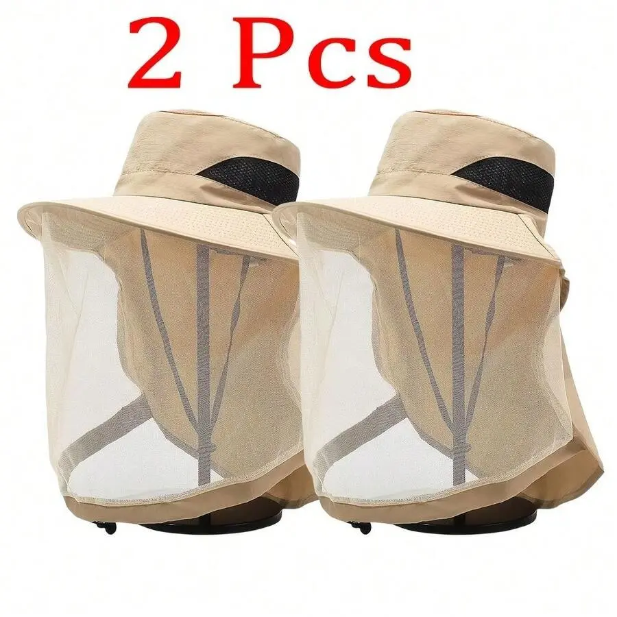 2pcs Mosquito Repellent Hats, Men's Fishing Hat With Face Covering, Sun Protection, Breathable Mesh Face Shield, Insect Proof For Night Fishing, Women's Bee Proof Hat, New Summer Sun Protection Bucket Hat For Women, Outdoor Fashion Sun Hat For Men