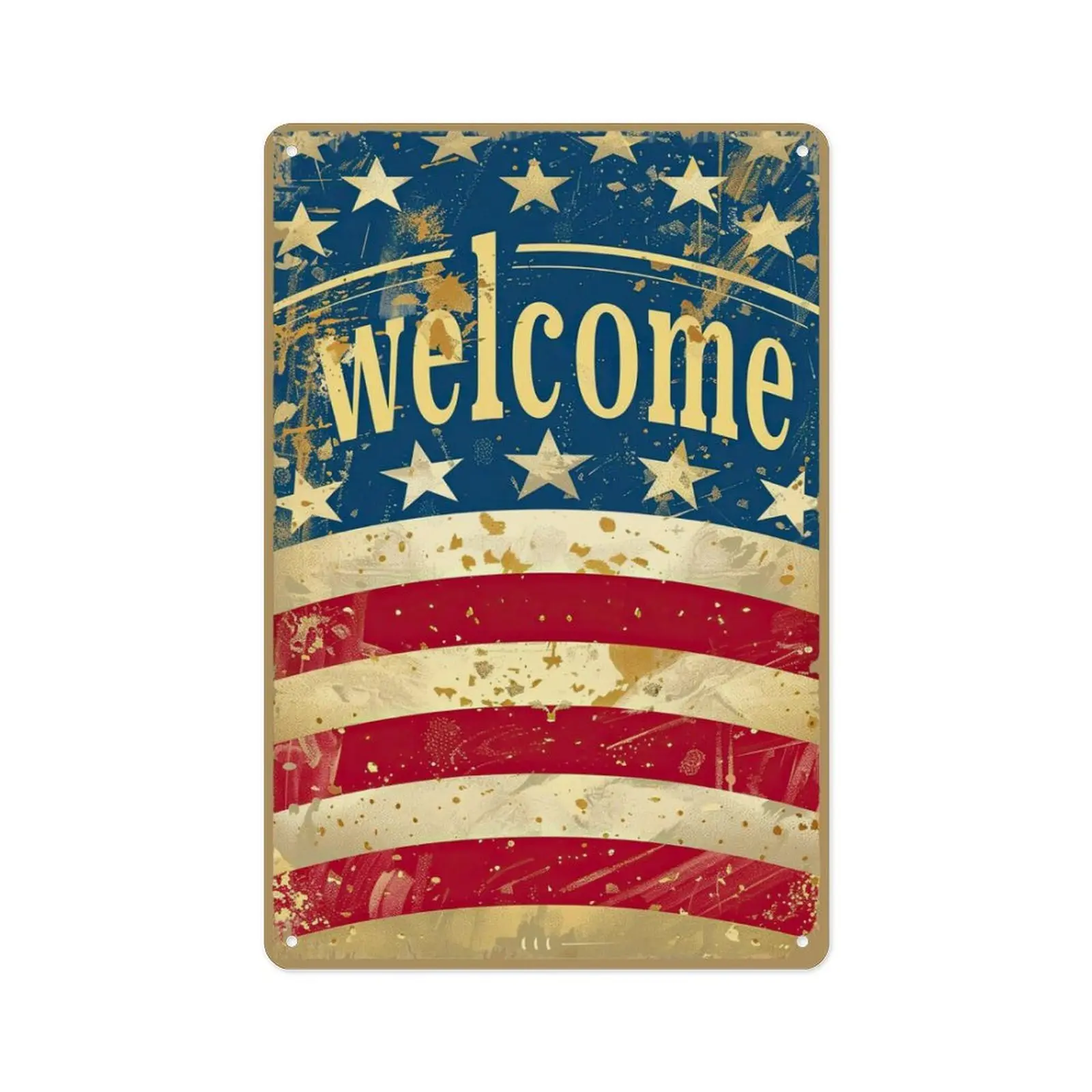 ✨ 8"x12" Rustic "Welcome" American Flag Metal Sign ✨