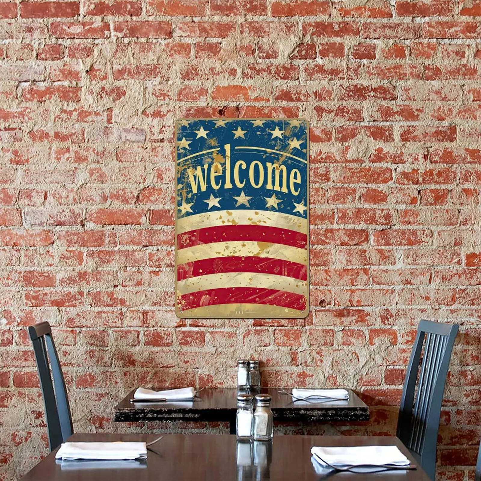 8"x12" Rustic "Welcome" American Flag Metal Sign, Farmhouse-Style Patriotic Wall Art for Outdoor Use