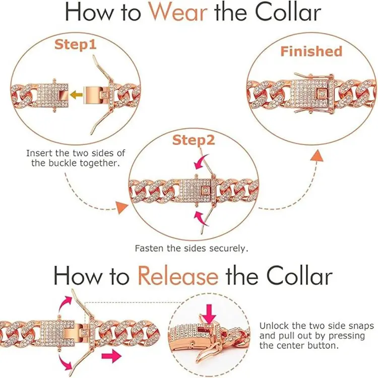 ·Sturdy Material: dog chain collar is made of quality zinc alloy, with zirconia diamond decoration, stylish, strong and will not easy to break or fade, and the surface is smooth