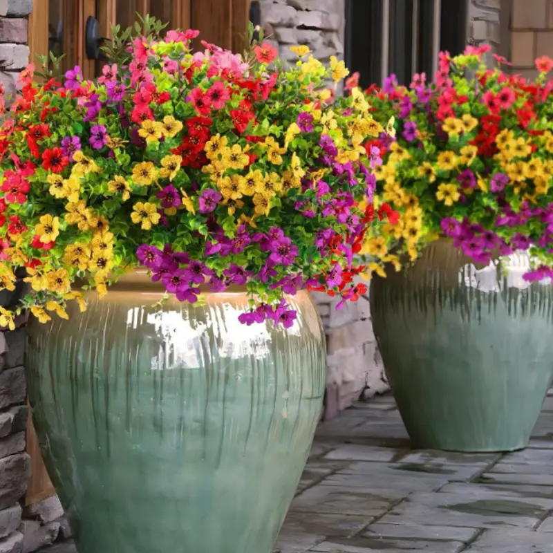 COROXAS 12 Bundles Faux Outside Boxwood UV Resistant Fake Outdoor Flowers Safe Colorful Decor for Mom Approved Home Garden Kids' Party