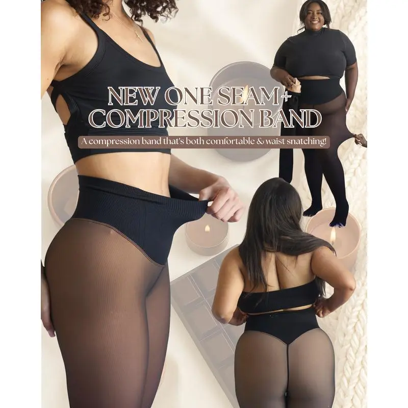 NEW COMPRESSION BAND & ONE SEAM OPTION! THE ORIGINAL MAGIC FLEECE LINED LEGGINGS - S TO XL - 4 SHADES - CLOSED FOOT - Fleece Tights Available in Plus Size and Light to Brown Fur