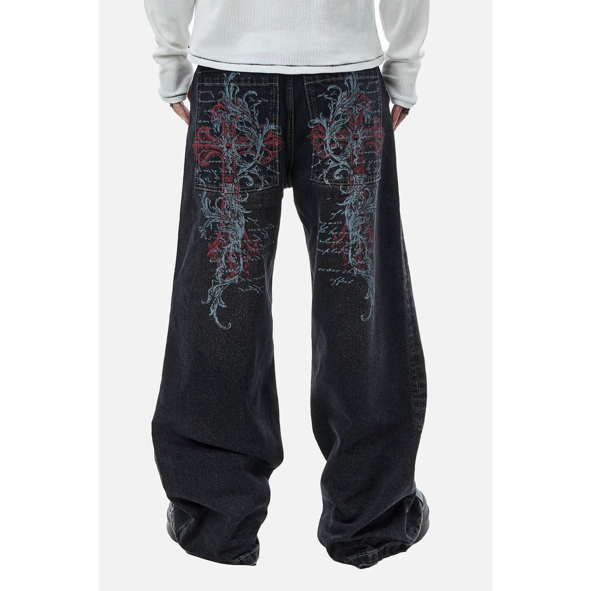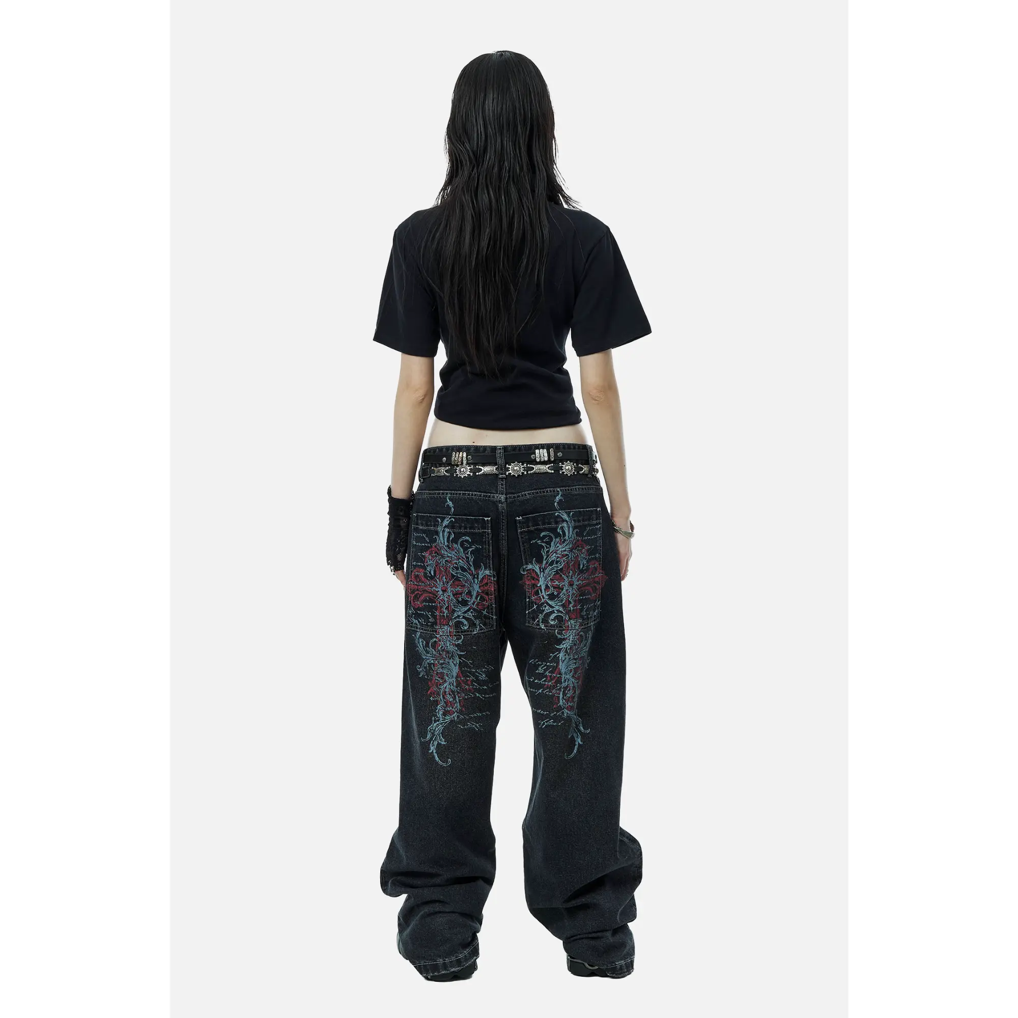 classic five-pocket layout, zip fly with button closure, and clean hems.