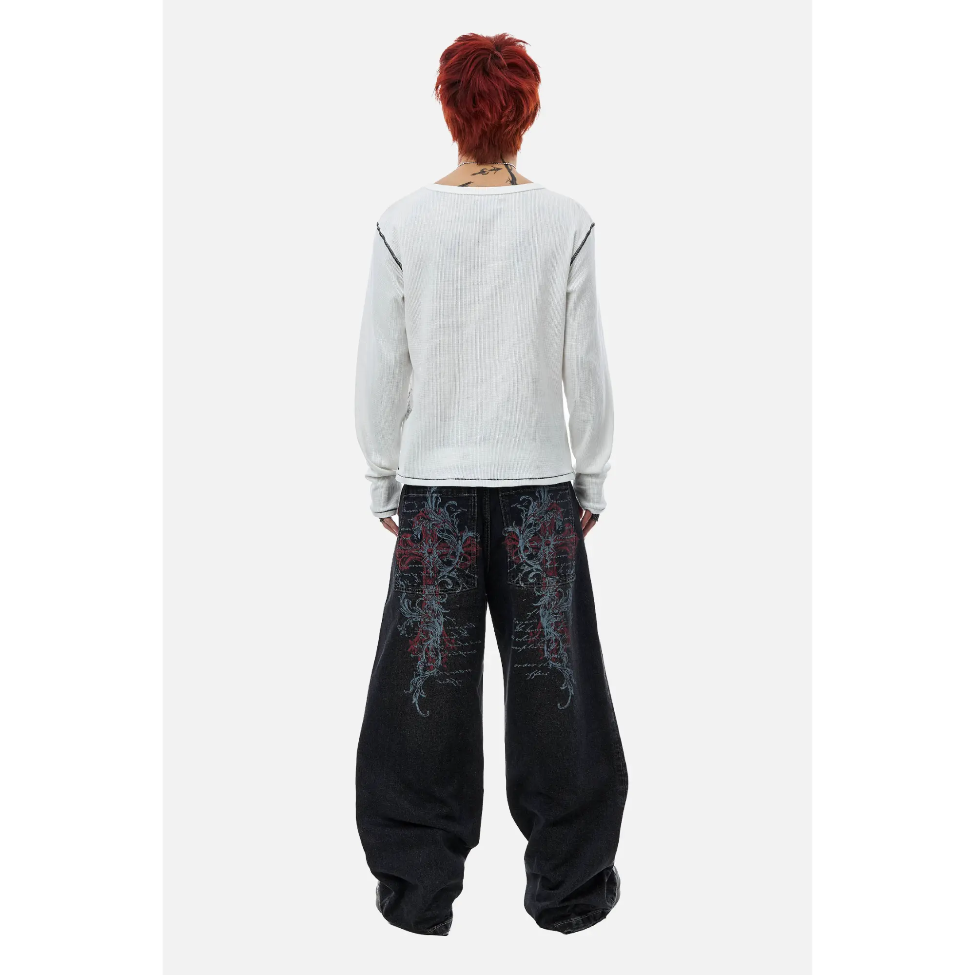 distressed detailing and subtle fading throughout the legs. Finished with a
