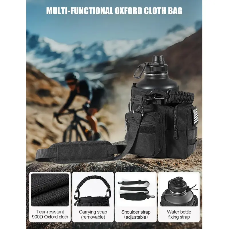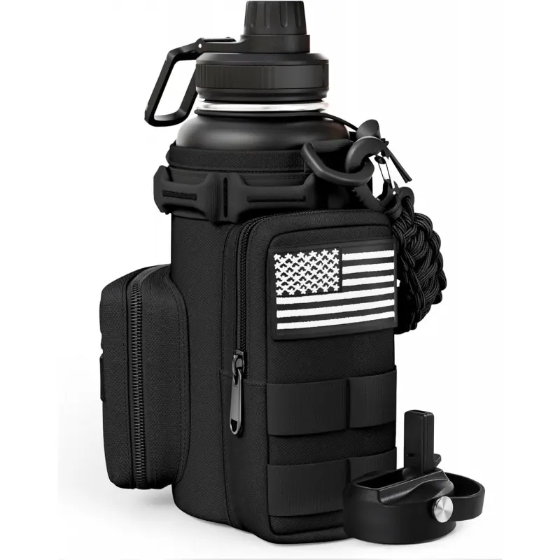 the included pouch with the molle system on the side of the water hug cover allows you to store your outdoor multi-tools, climbing ropes, miniature flashlight, keys, cell phone, and more.If you don't know where to put your outdoor essentials, take this bottle with you
