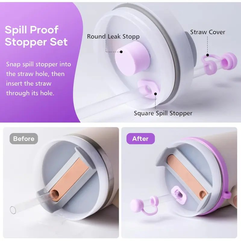 The silicone leak-proof stopper features a 360 ° leak-proof design, while the straw topper covers is compatible with 9-11mm diameter straws,keeping your drinking safe.
