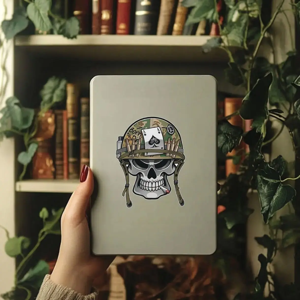 Army Skull Sticker, Military Helmet Skeleton Decal, Bullets and Playing Card Sticker, Tactical Vinyl Sticker for Laptop Car Gear, Laptop Water Bottle Decal Sticker