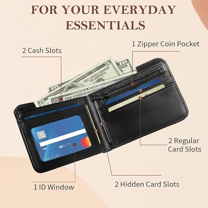 ·Multifunctional and Organized Storage: Multiple dedicated card slots securely store credit cards, ID cards, and membership cards. A separate coin pocket keeps loose change organized and can easily accommodate folded cash—a truly all-in-one wallet to meet your daily needs.