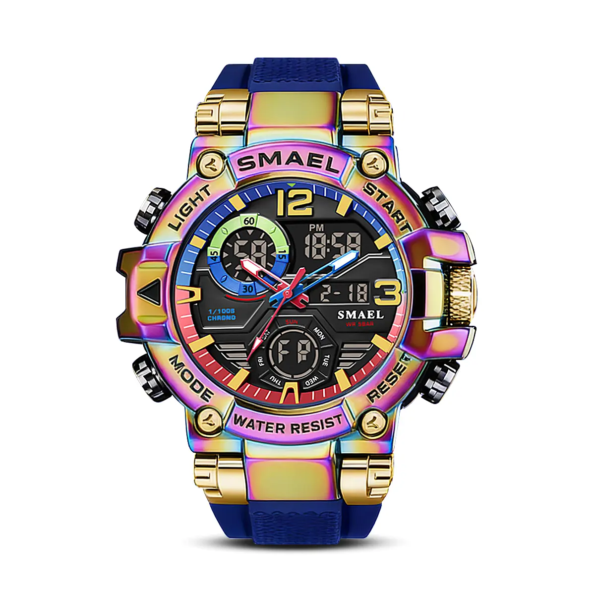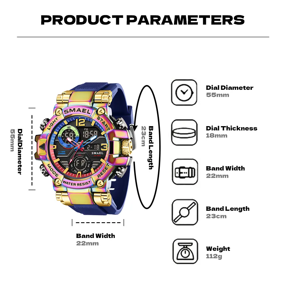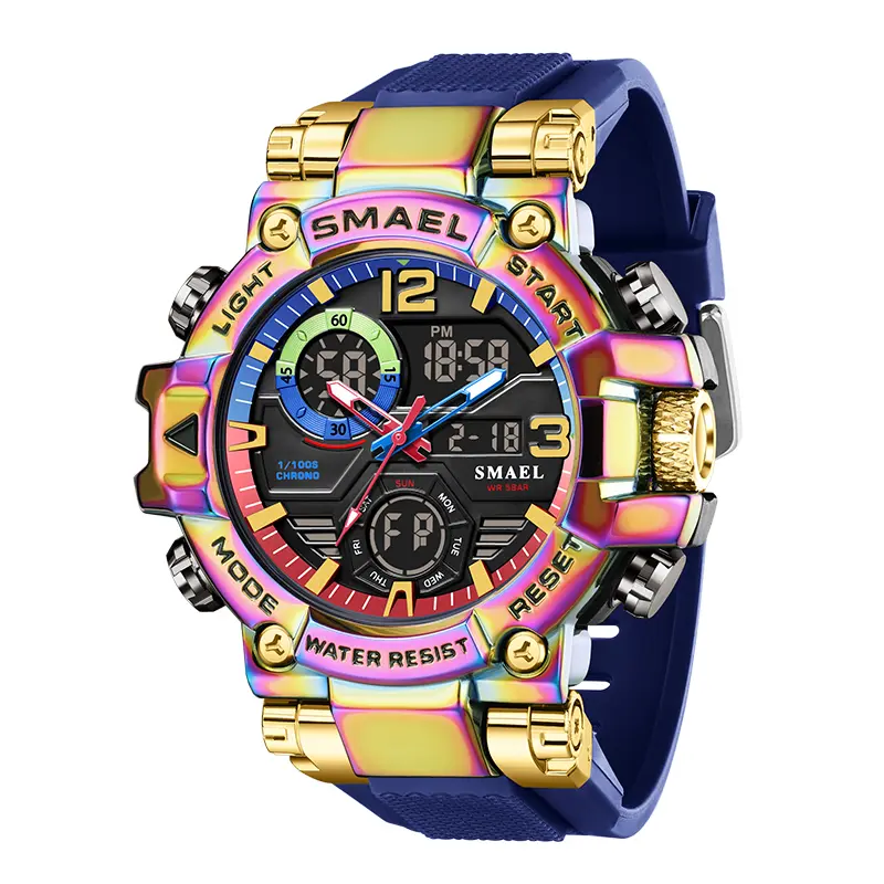 Elevate your style with this vibrant Punk Style Quartz Watch. Perfect for the modern man, it features a dual display combining analog and digital functions. Ideal for sports and everyday wear, this watch is a versatile accessory. Comes with a gift box. Embrace the trend with this multifunctional timepiece.
