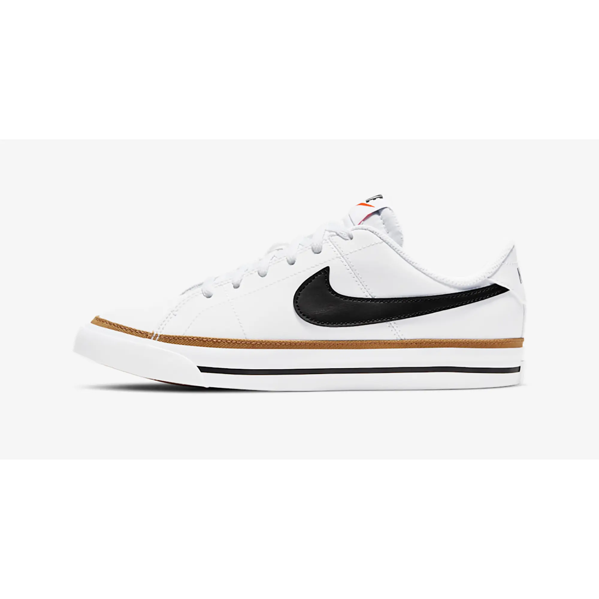 Command the court with the Nike Court Legacy GS "White," a Grade School-exclusive essential that reinterprets heritage tennis DNA through a clinical, low-profile lens. Featuring a premium landscape of crisp white leather for a streamlined anatomical profile, the design is defined by its bold black Swoosh and a specialized tan canvas trim that provides a sharp, luxury-tier strike. Grounded by a matching white rubber midsole with a signature black racing stripe and a classic herringbone outsole for elite traction, this release successfully pairs the aggressive DNA of pro-level court heritage with a sophisticated, timeless aesthetic.