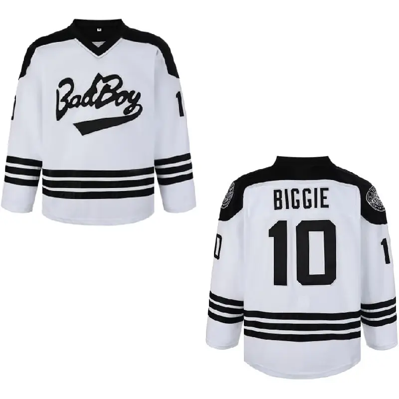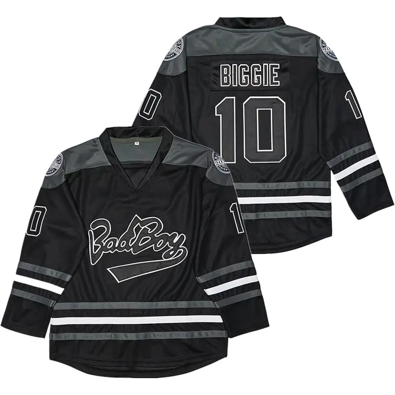 Men's # 10 Smalls Bad Boy Jersey 90S Hip Hop Long sleeve Black White hockey Jerseys Stitched