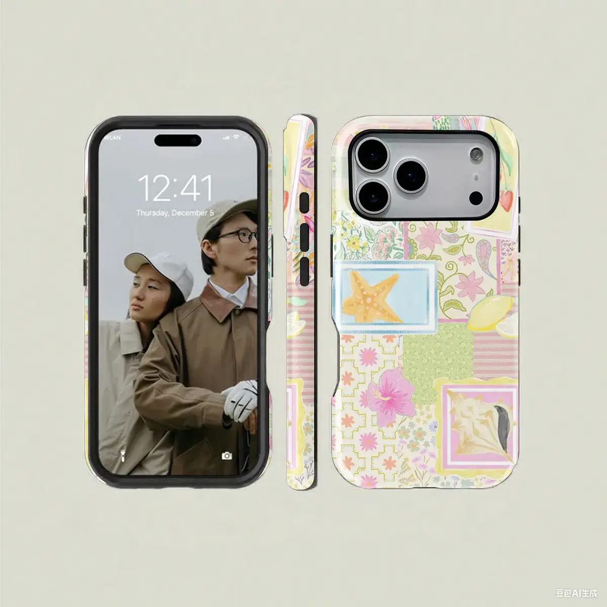 starfish lemon flower double layer protective case, solid two-in-one protective case, suitable for iPhone 17 16 15 Pro 14 13 12 11 Pro Max