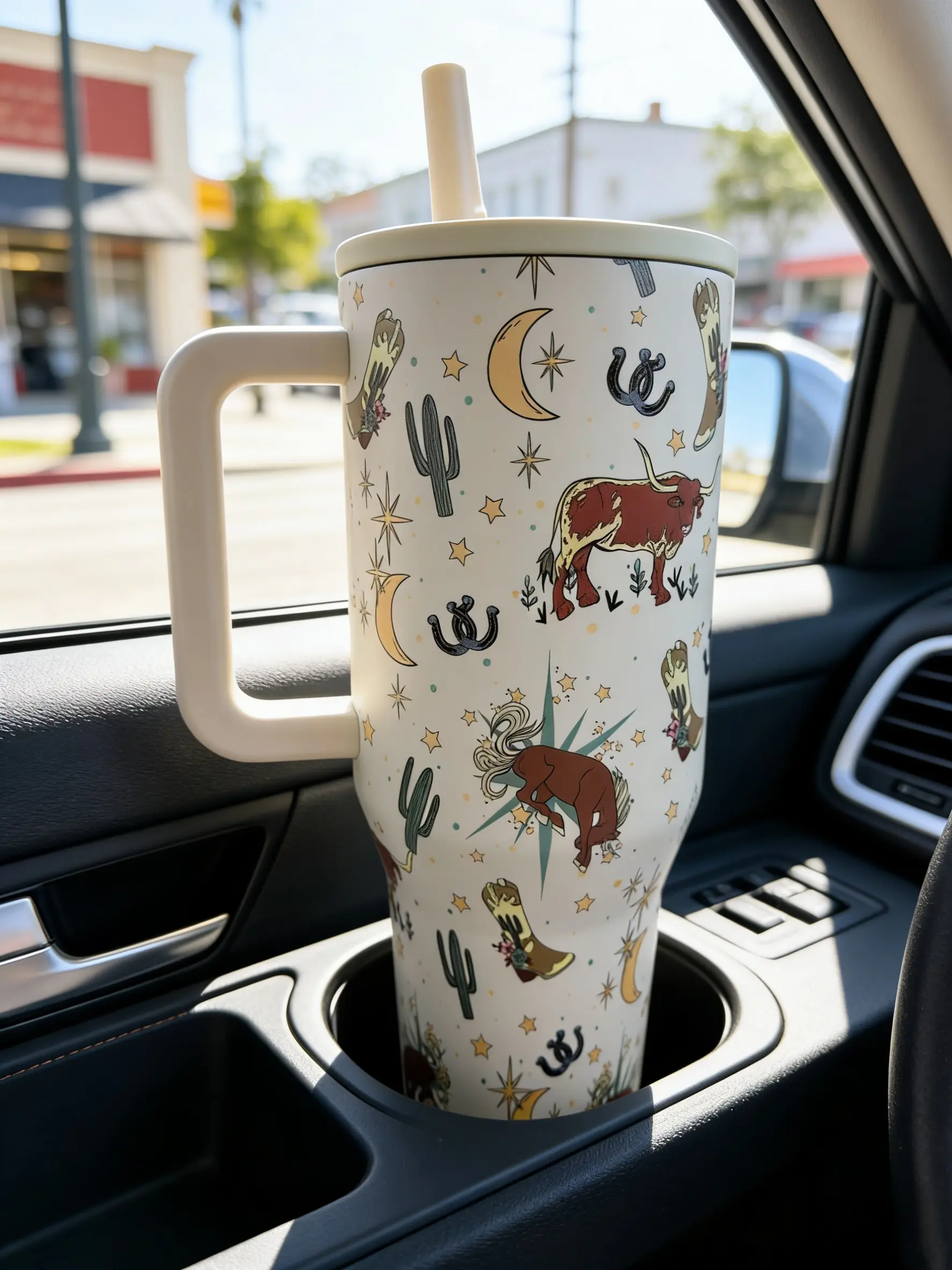 HydroJug 40oz Western Cowboy Tumbler with Handle Insulated Stainless Steel Cup Leakproof Lid Retro Desert Cattle Design Portable Drinkware Flasks Mug Bottles Water Bottles frozen drink glitter toddler gym can Engine-Themed Double-Walled bartender pink