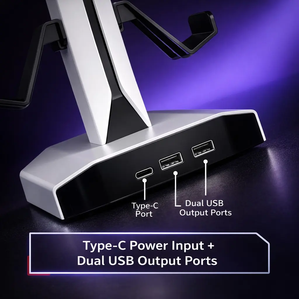 Headphone & Controller Stand with RGB Light, Rotatable Headset Stand, 9 Light Modes, 2 USB and Type-C Ports, Gaming Accessories