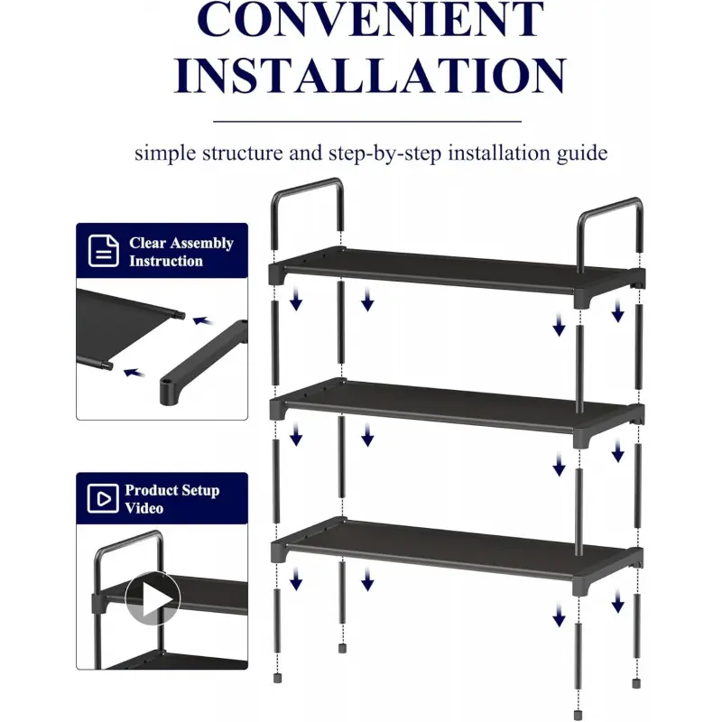TOOL-FREE ASSEMBLY: With its simple structure, this shoe rack is designed for a tool-free setup.It comes with a detailed instruction manual and an easy-to-follow installation video, allowing you to complete it quickly and independently.Enjoy a hassle-free setup and start using this shoe organizer for entryway in no time!