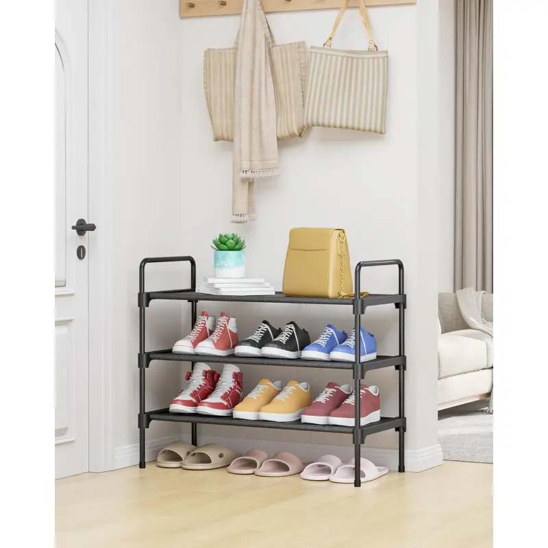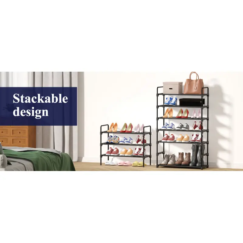 FLEXIBLE APPLICATION: Thanks to its compact design, shoes rack fits seamlessly into various spaces. Whether it's a closet, living room, or entryway, this shoe rack effortlessly adapts to your needs. It offers a practical solution for any space, keeping your shoes neatly arranged and within reach.