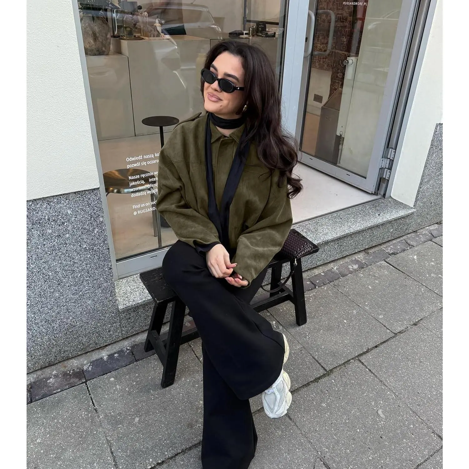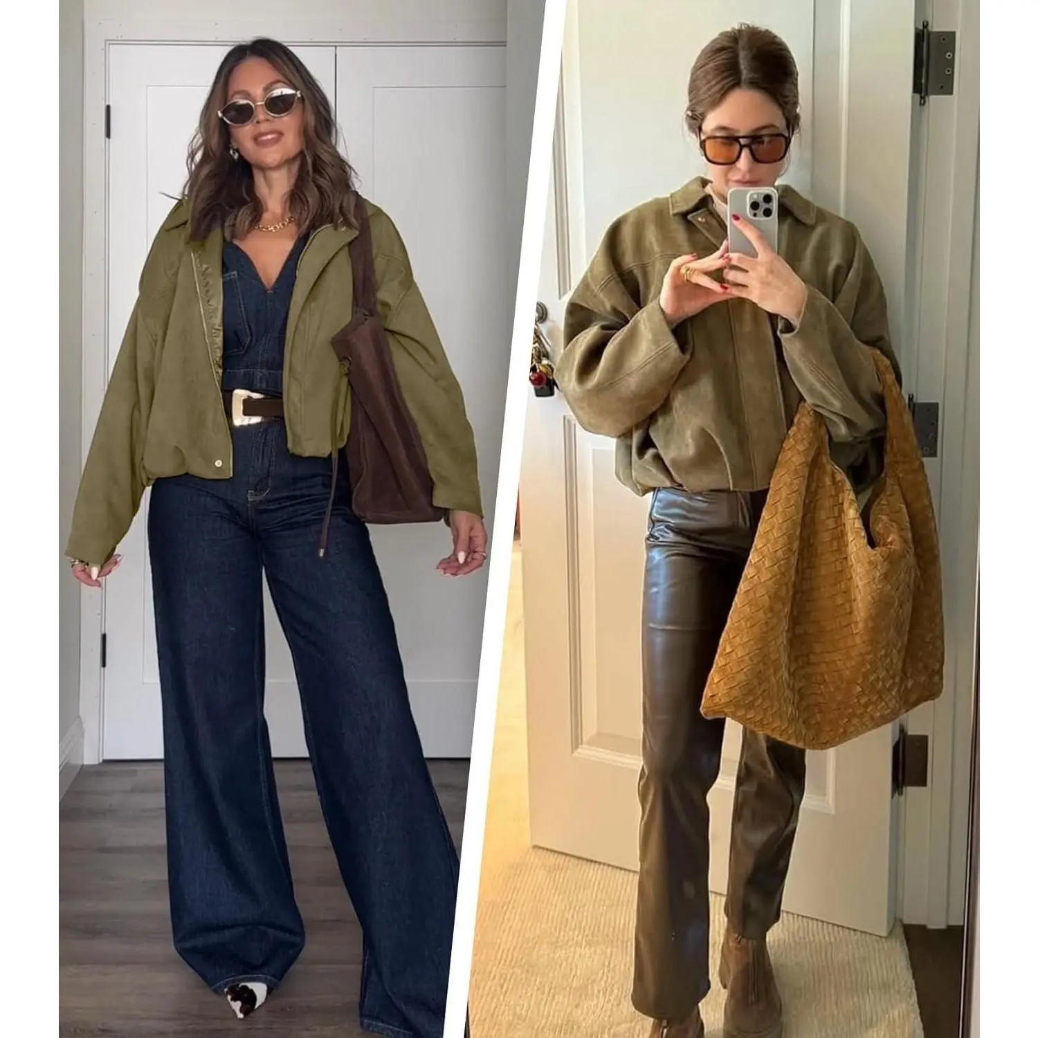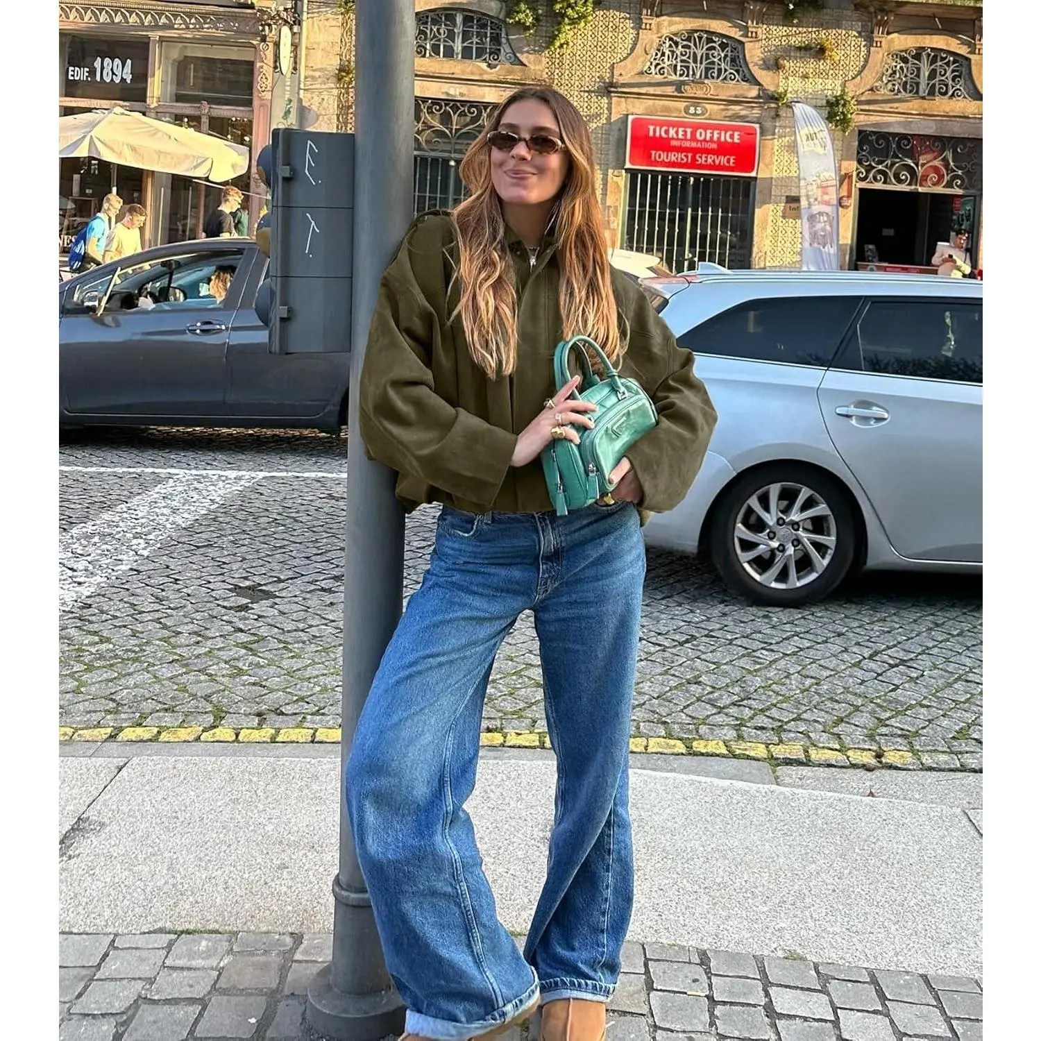 Elevate your everyday style with this Womens Suede Bomber Jacket. Designed with a soft suede finish and an oversized fit, it brings effortless street style and comfort to your spring wardrobe.