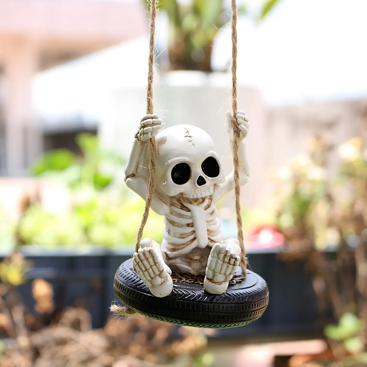 Unique Tire Swing Skull Pendant, Hanging Garden Statue, Halloween Gift, Outdoor Fall Decoration, Tree Hang Decor, Patio Lawn Accent
