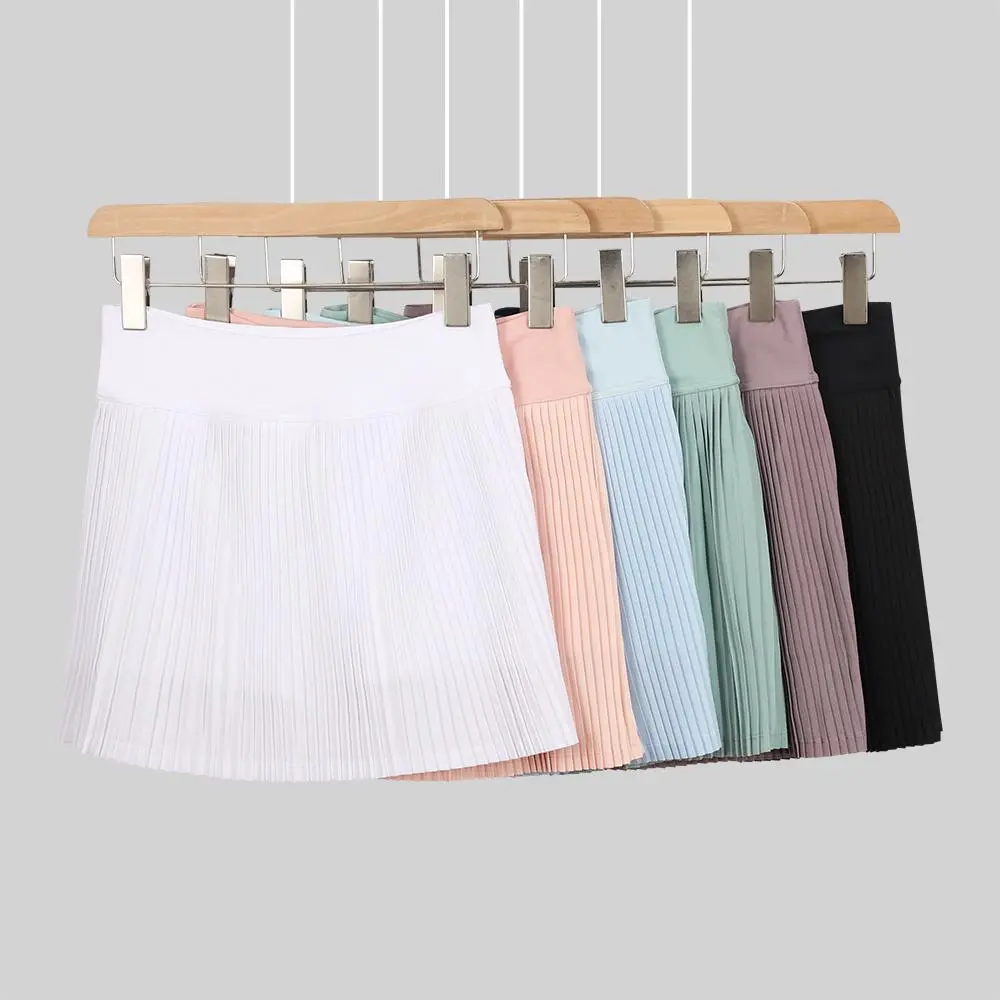 LULU Women's Solid-Color High-Waisted Yoga Skirt, Casual Slim-Fit Yoga Skirt, Spring/Summer Workout Wear, Includes Anti-Slip Underpants
